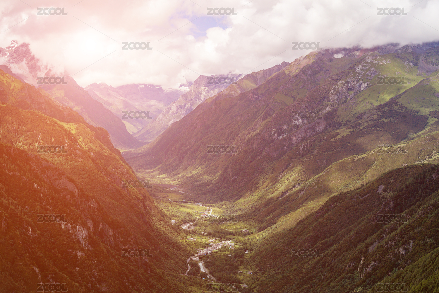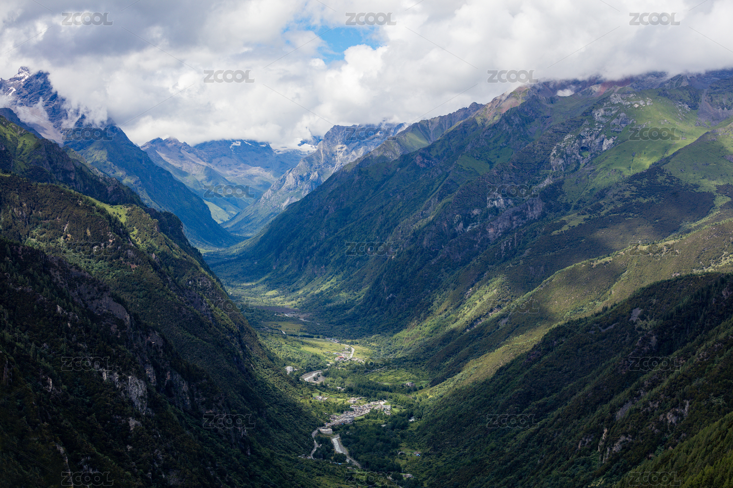 云雾缭绕的四川阿坝州毕棚沟景区雪山
