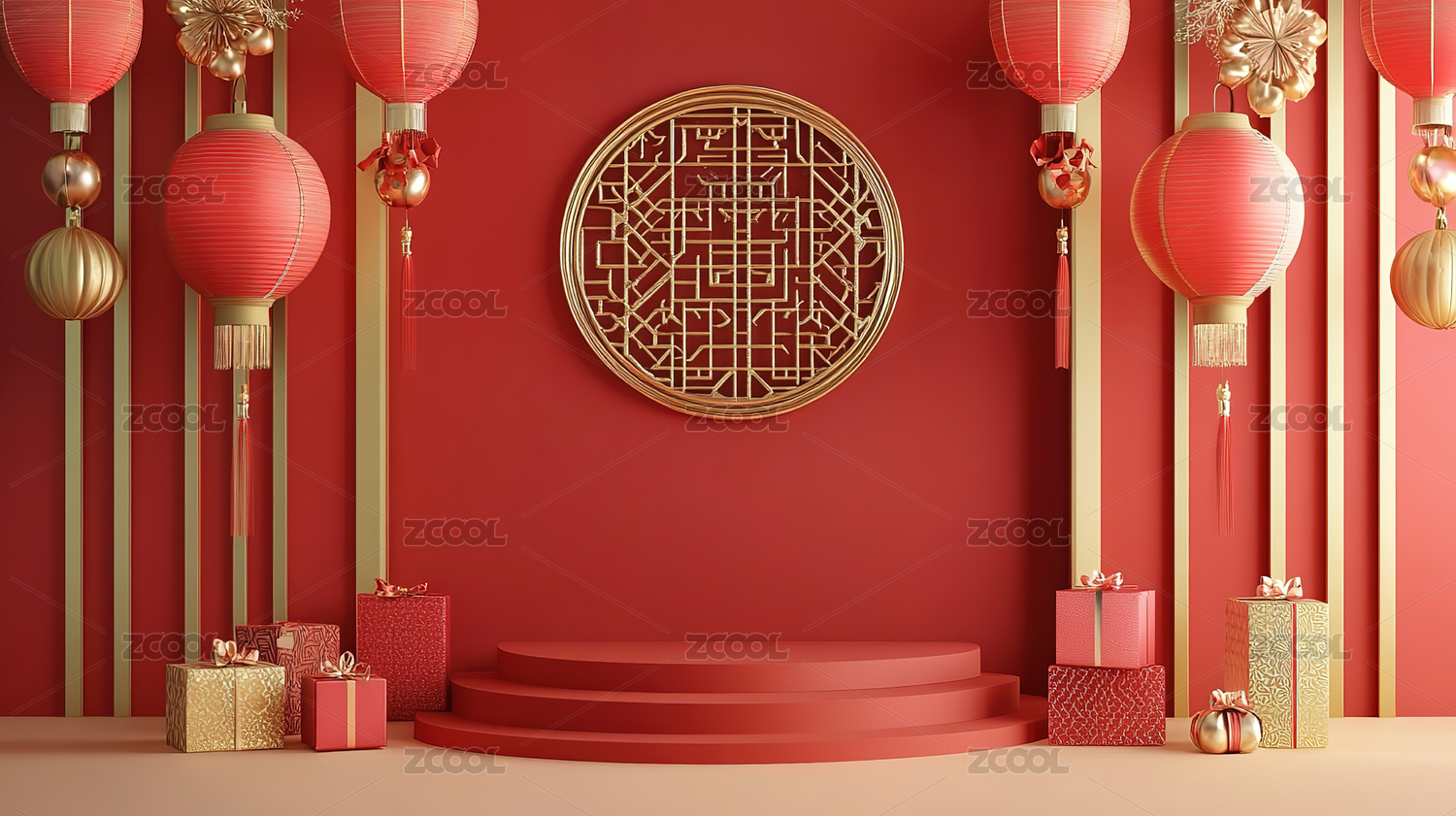 建筑,室内,AI数字艺术,红色,舞台,三维图形,节日,插画,商务