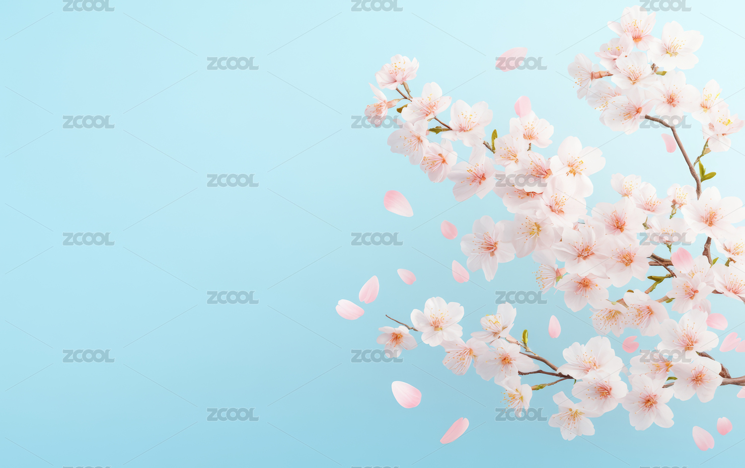 浅蓝背景下的粉色樱花