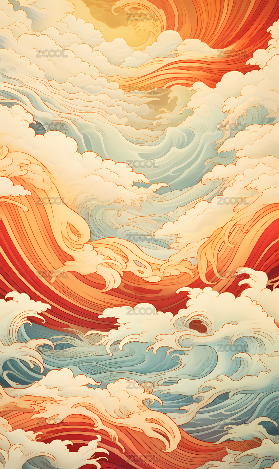 祥云海浪背景