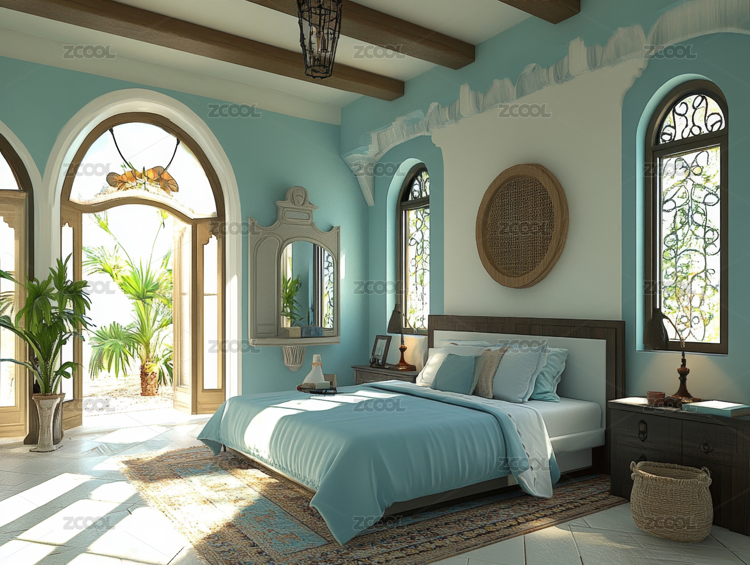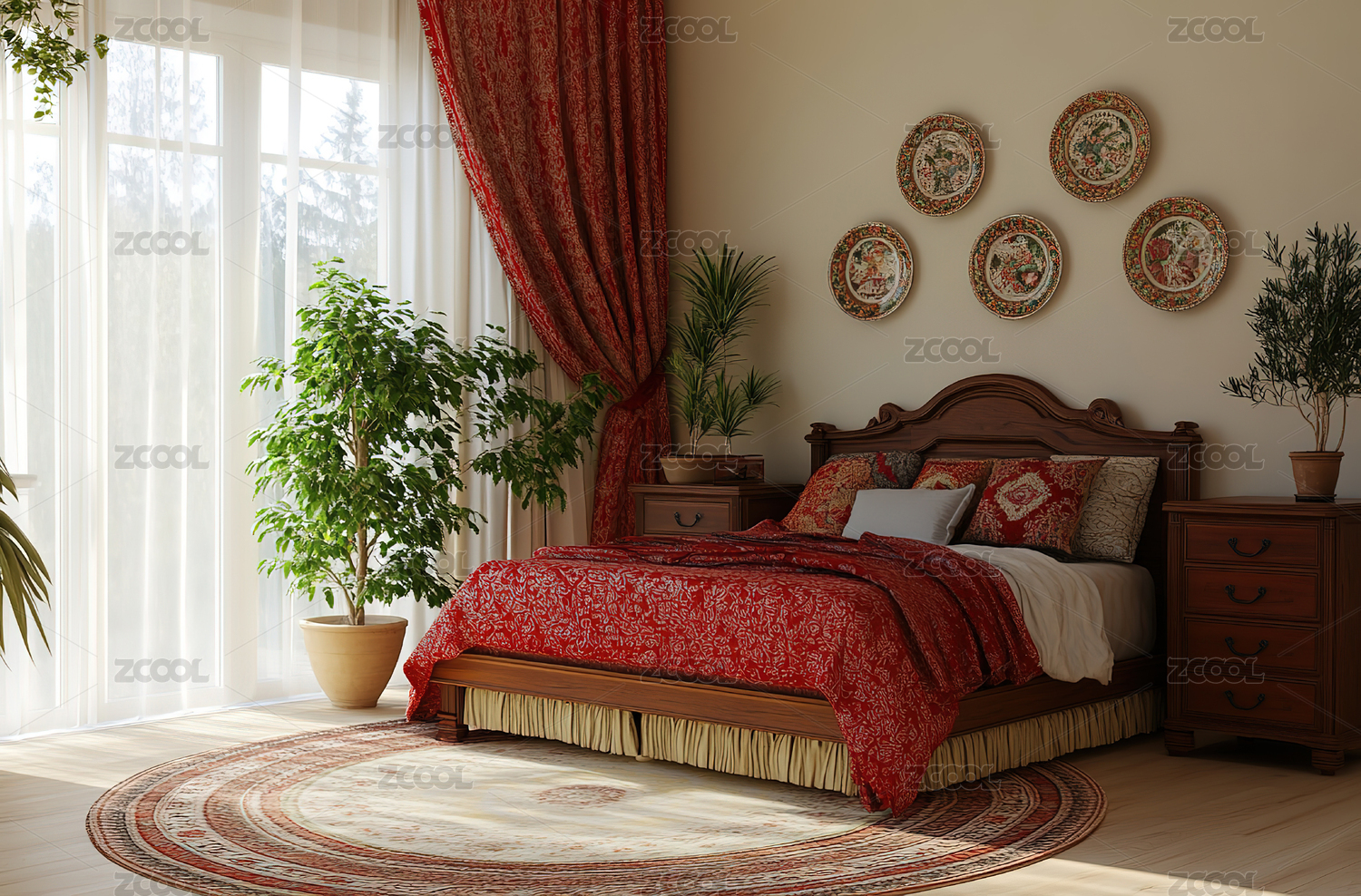 室内,装饰物,床,椅子,窗帘,白色,窗户