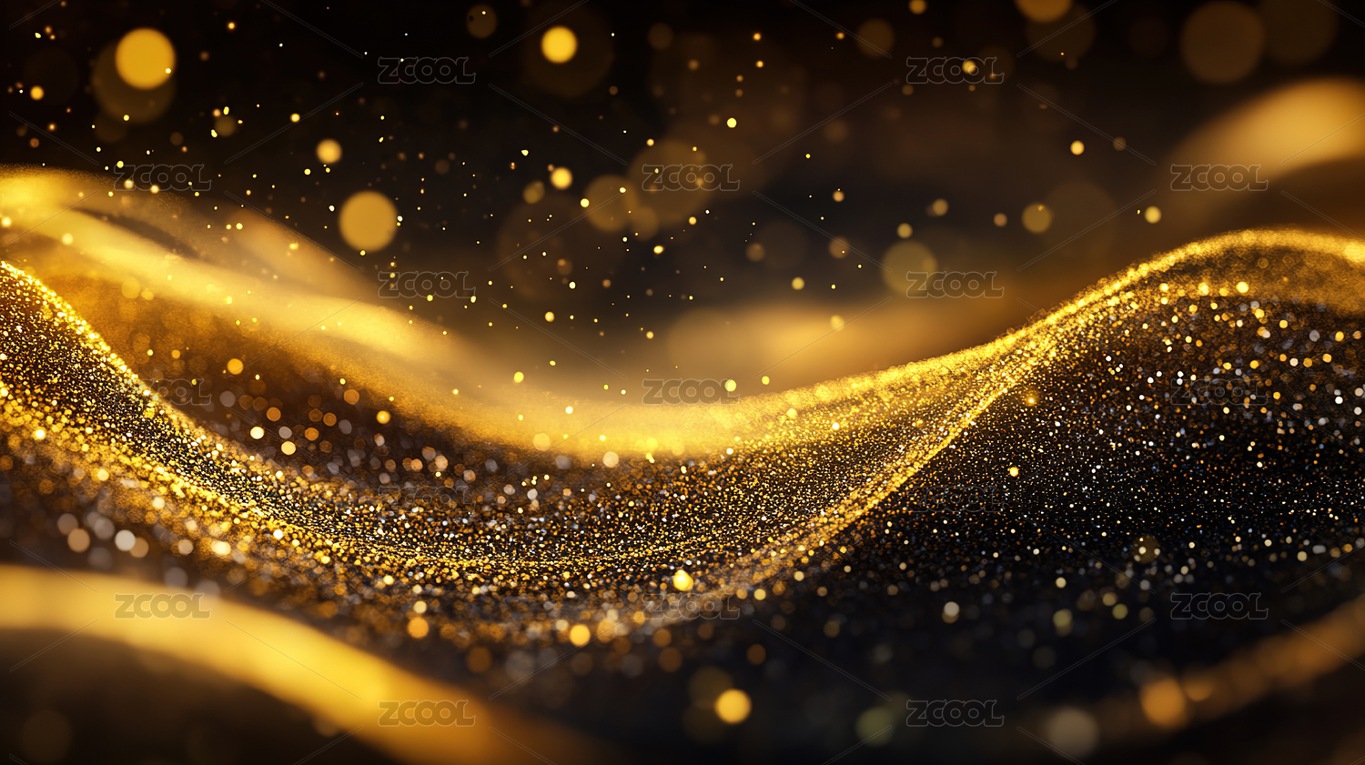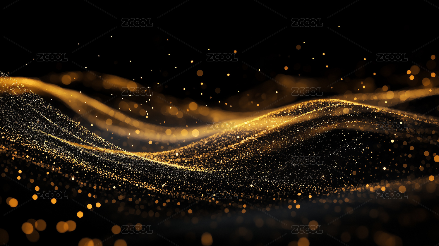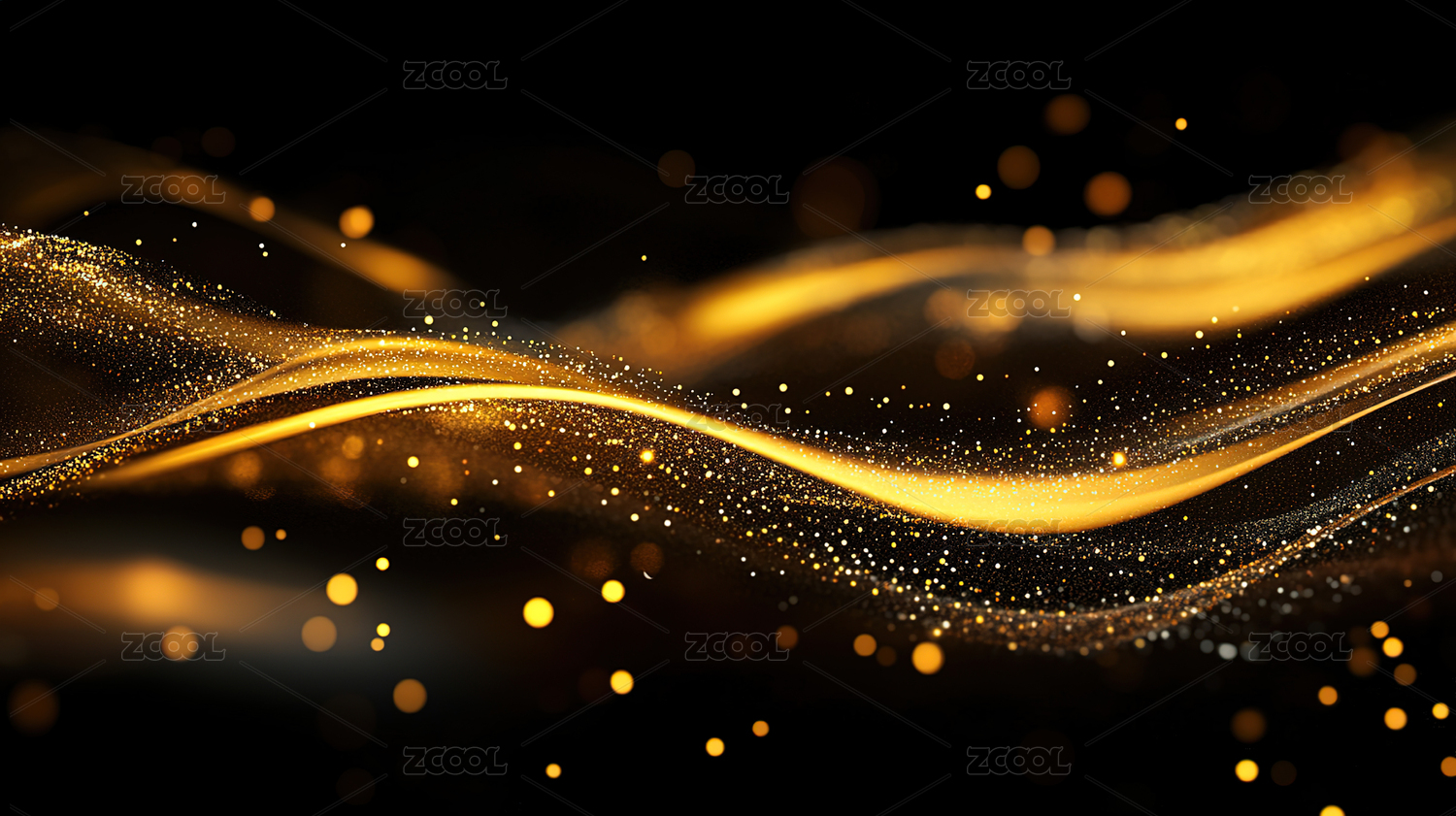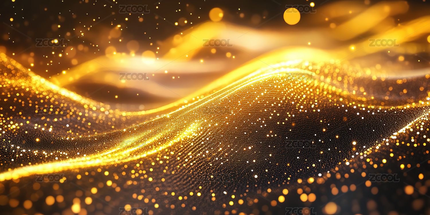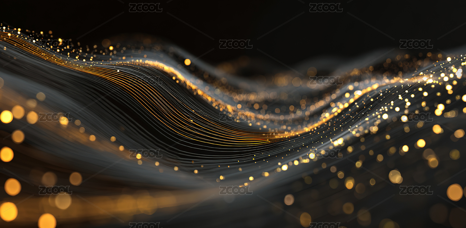 金色波浪线条与光点的抽象艺术