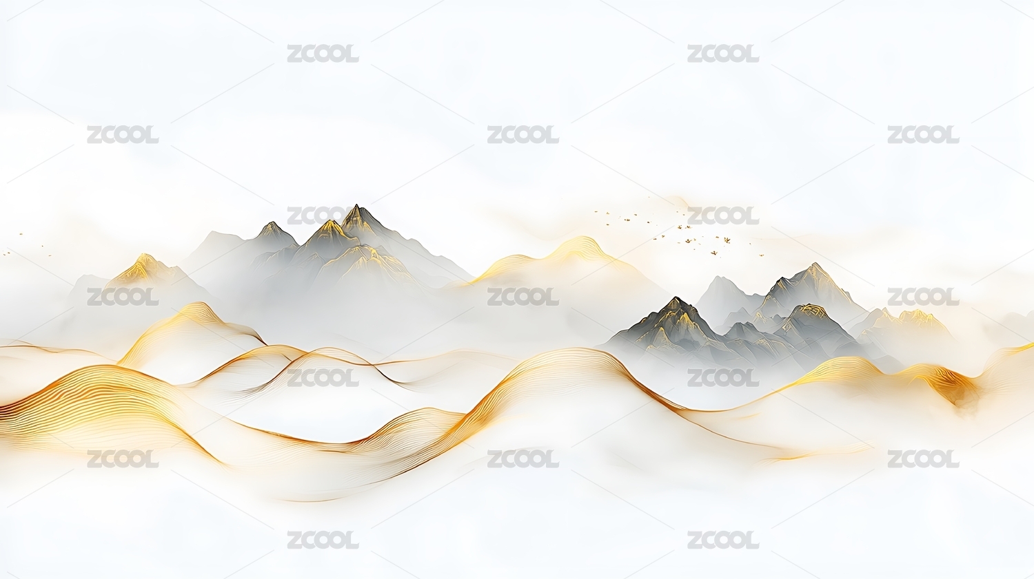金色山峦水墨画