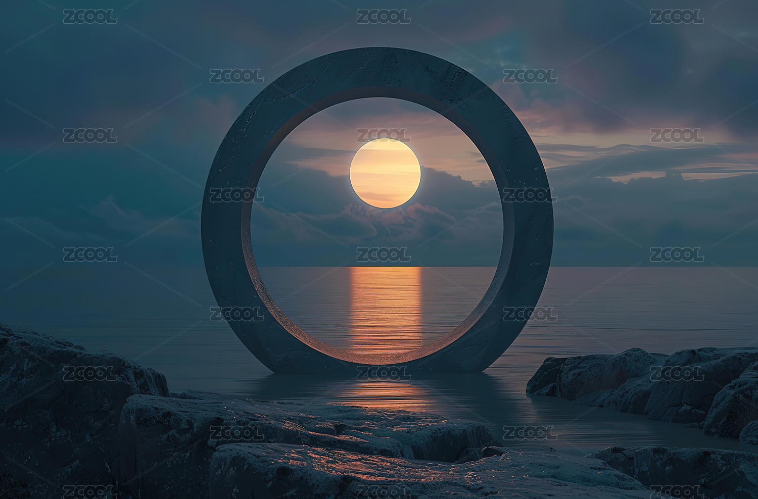 巨型圆环与静谧水面