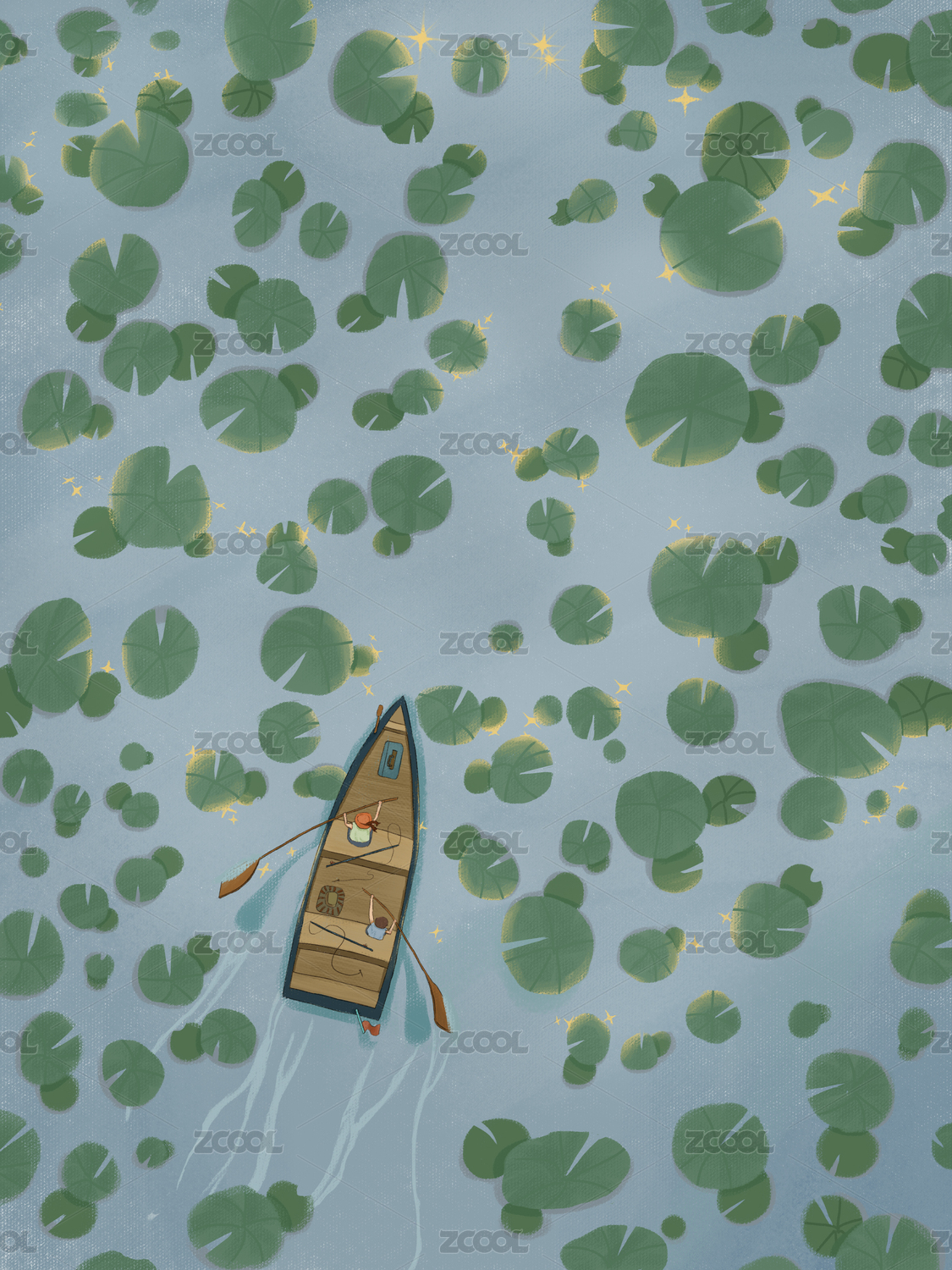 荷叶上的小船插画