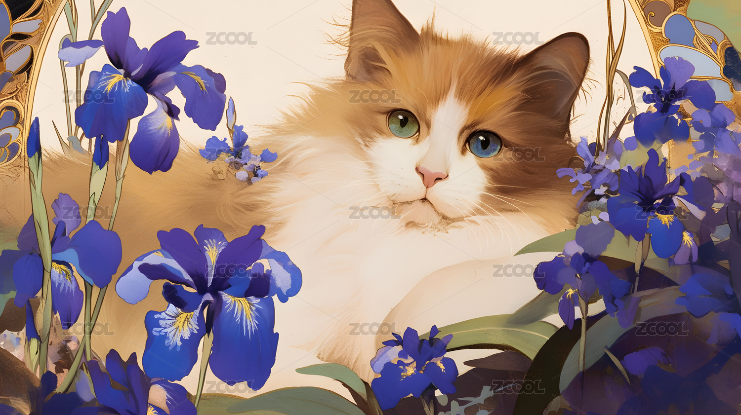 猫咪与紫色花朵的梦幻组合
