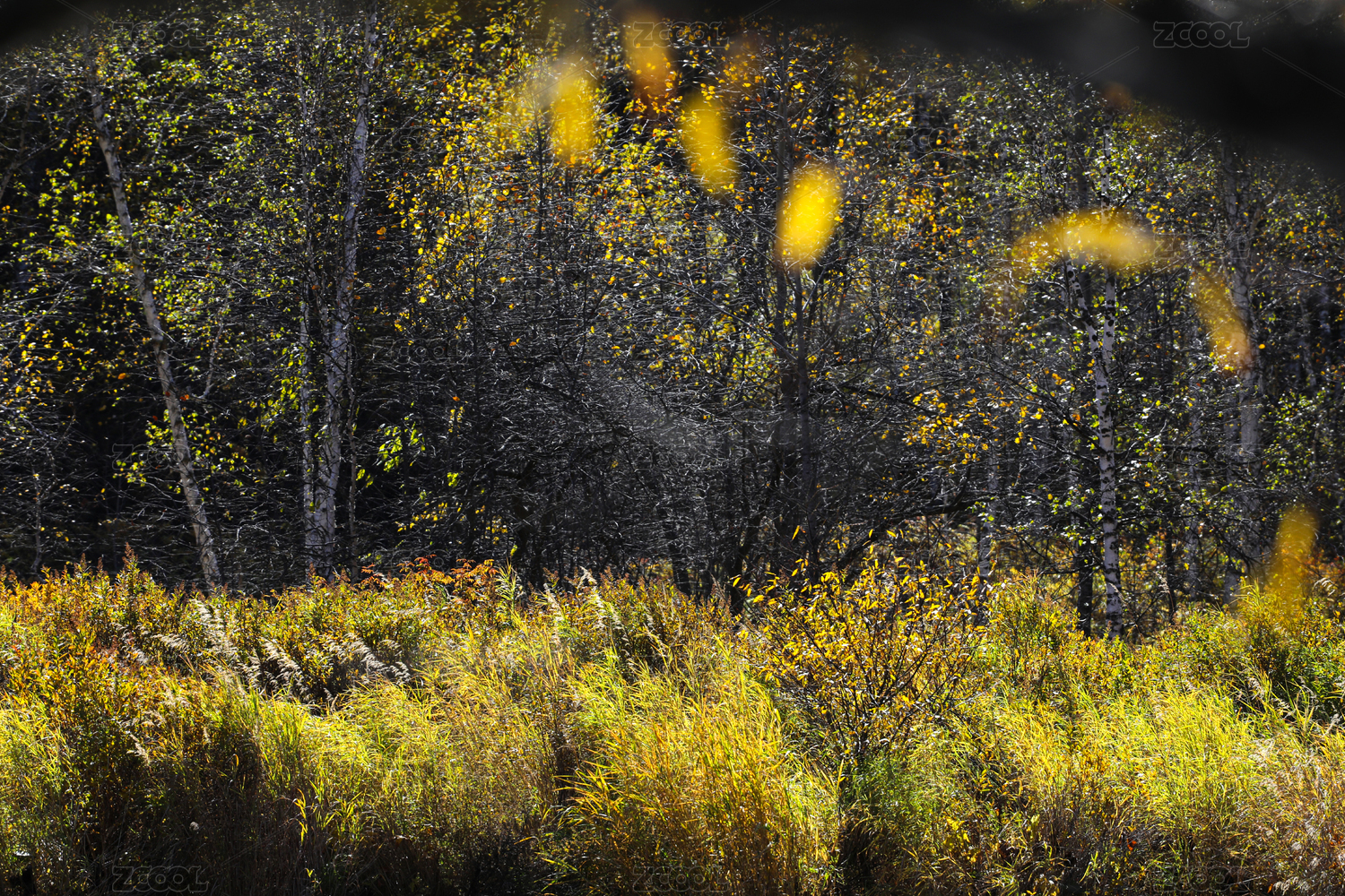 内蒙古阿尔山秋天里金黄色森林树木风景