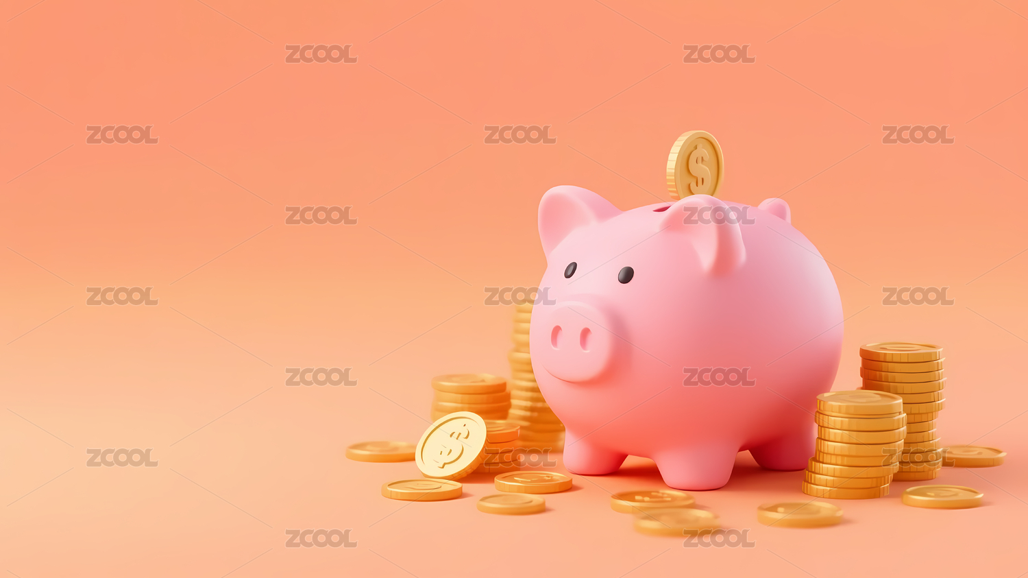 粉色存钱罐与堆叠硬币