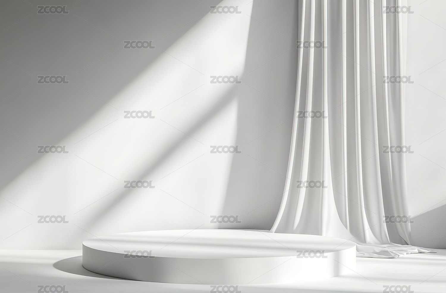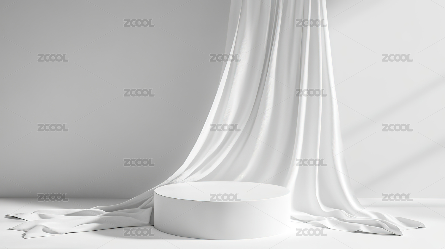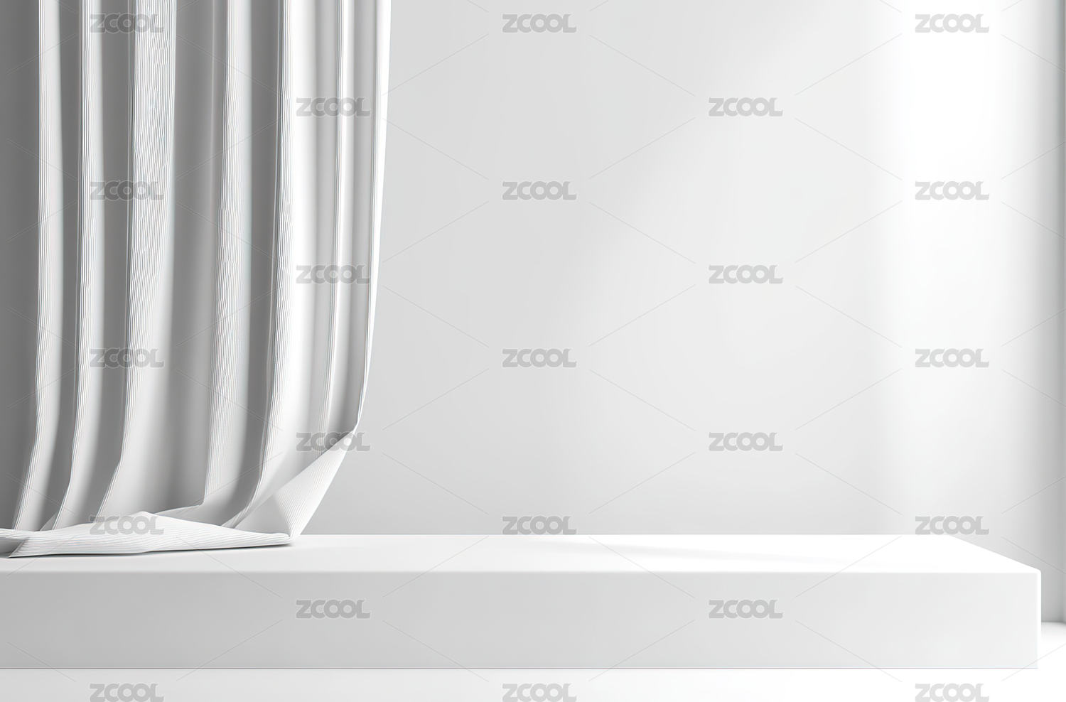 有白色窗帘的电商展示舞台