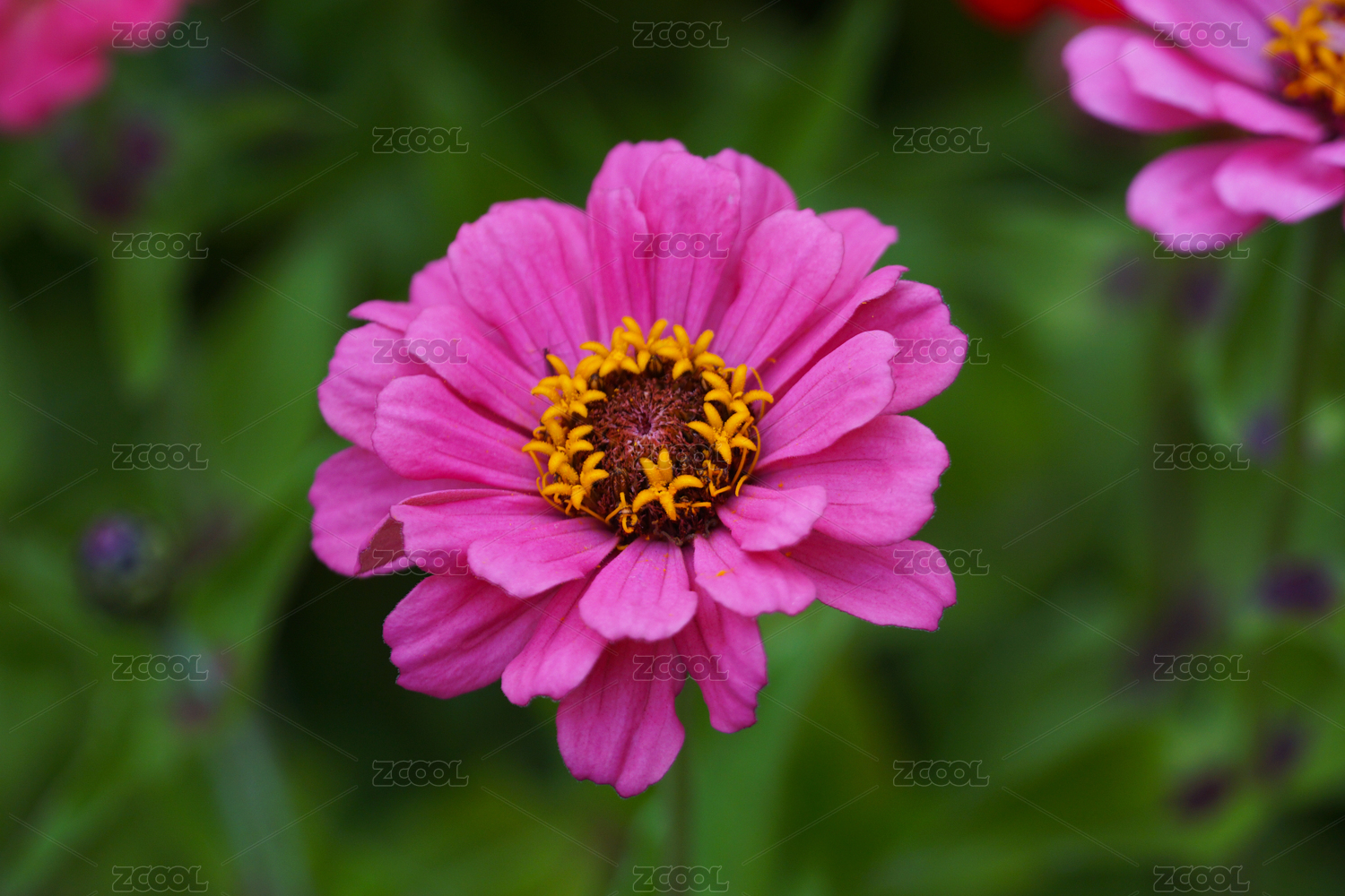 公园里绽放的一朵粉红色的百日菊花瓣微距特写