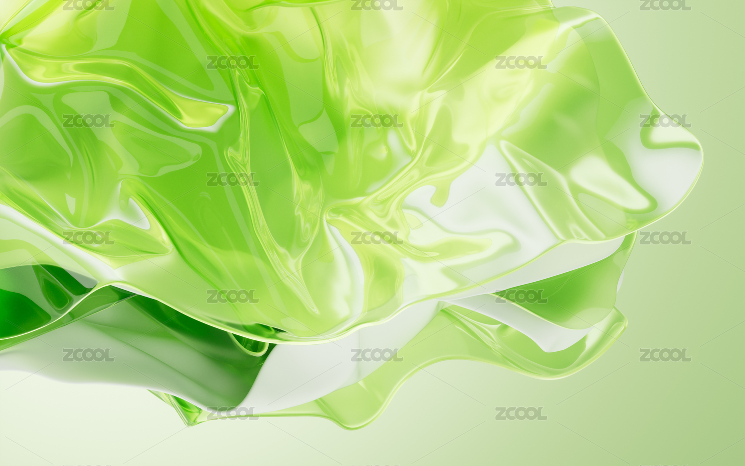 流动的多层绿色透明布料曲面三维渲染