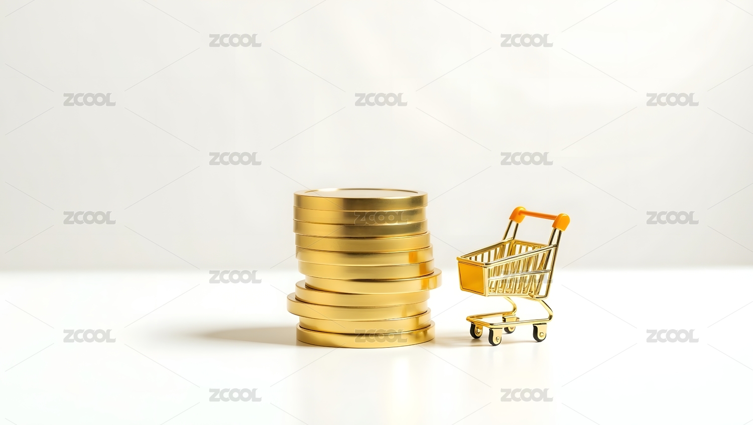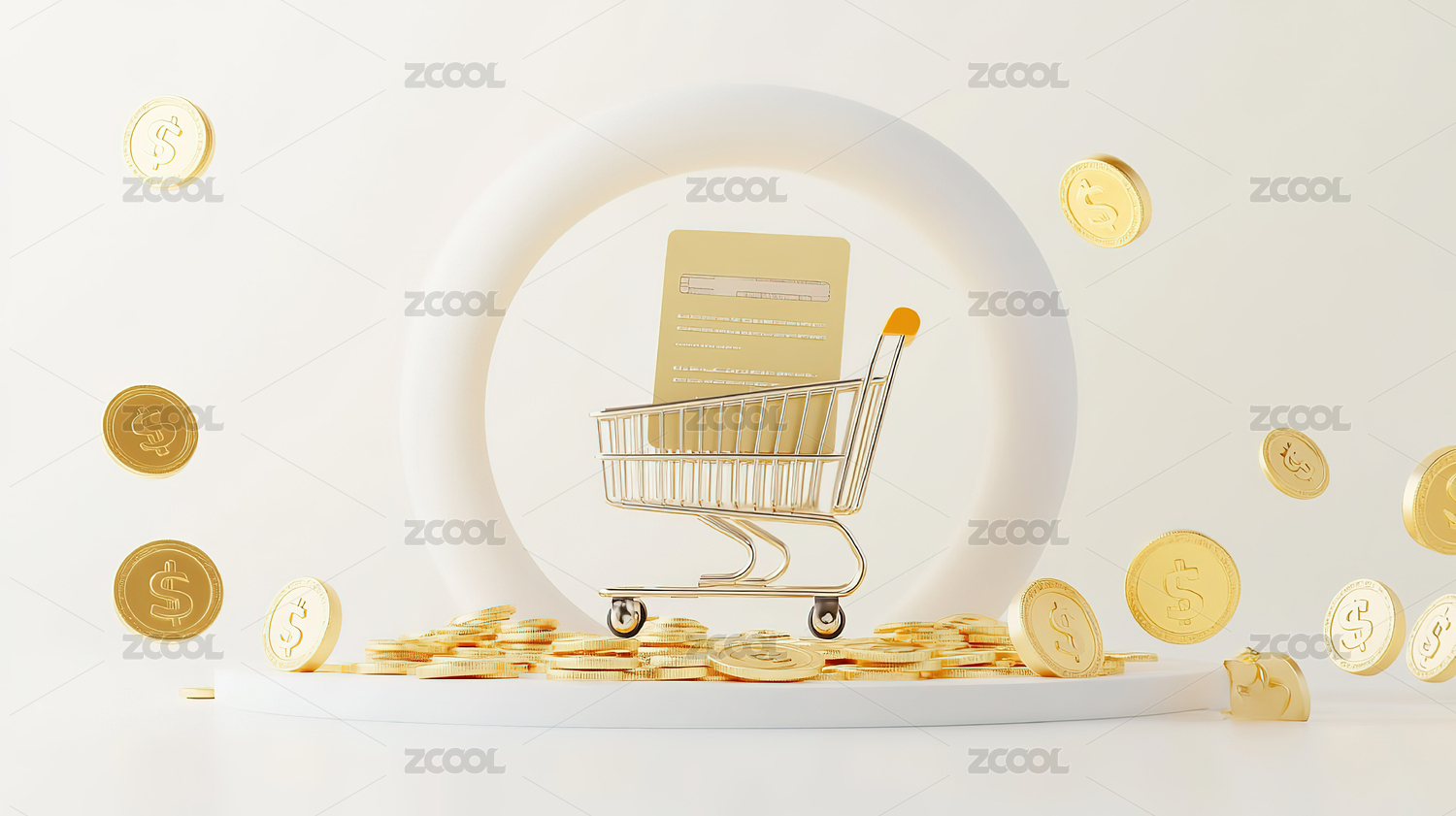金色硬币与购物车