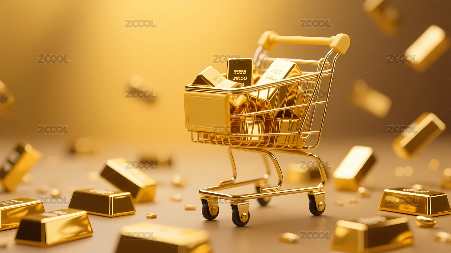 金色购物车金条堆