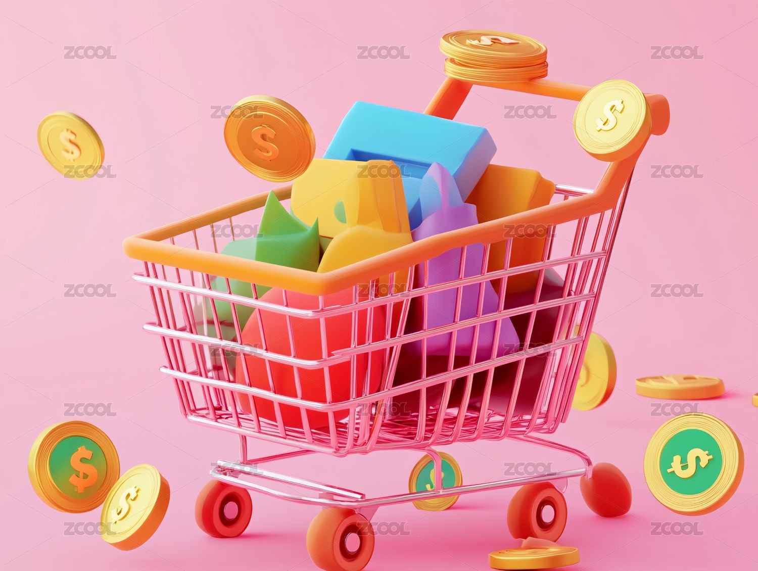 购物车与金钱象征电商消费