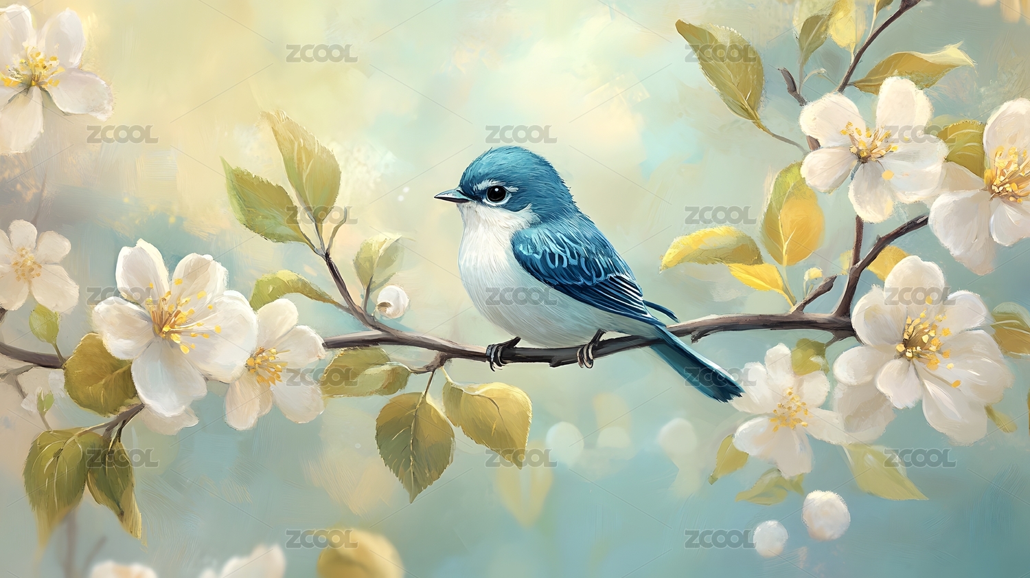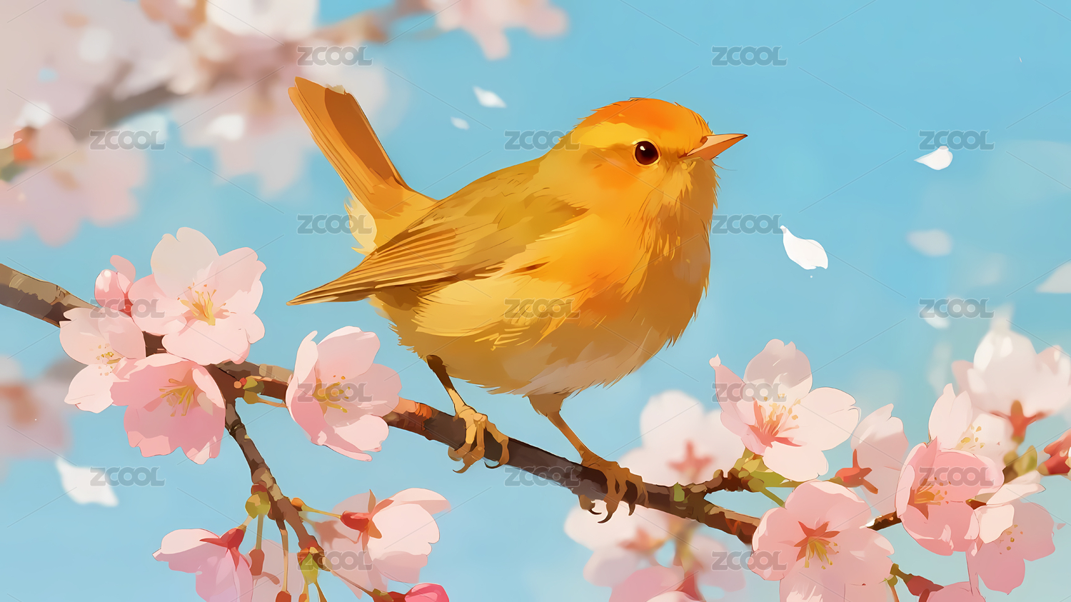金色,雀,鸟类,动物,特写,可爱,色彩,树枝,春天,插画