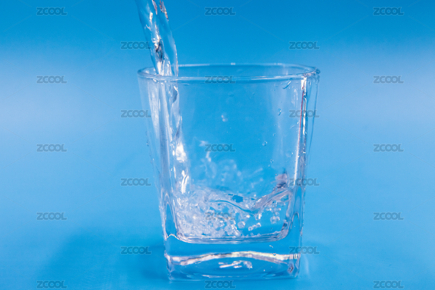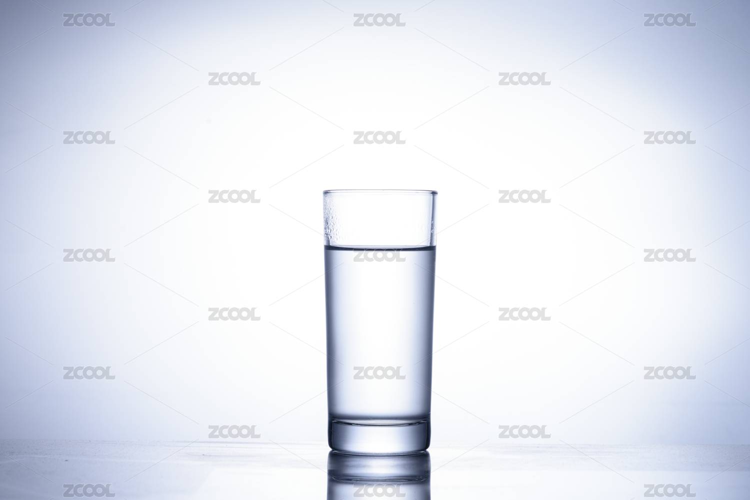 透明水杯与蓝色光斑背景