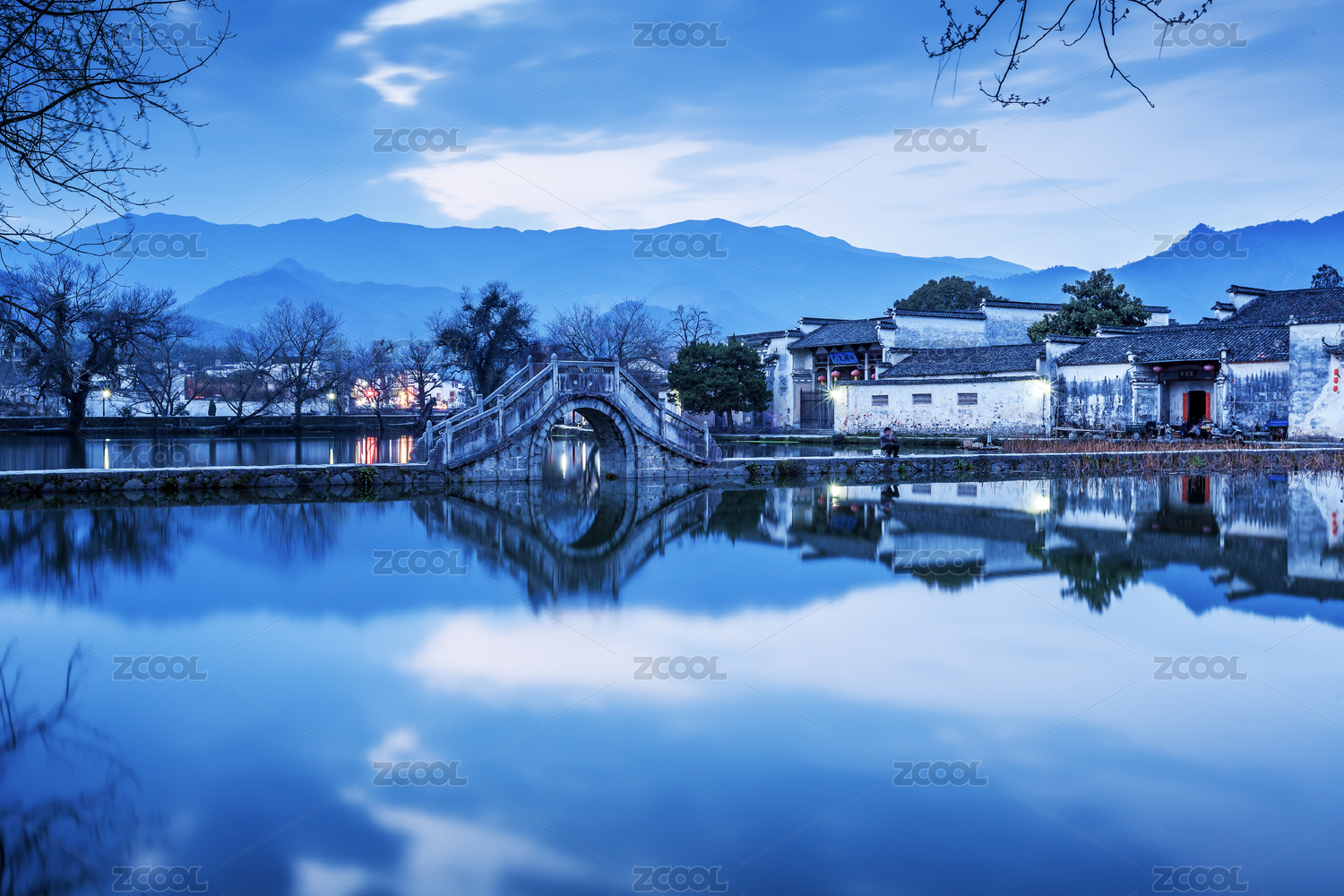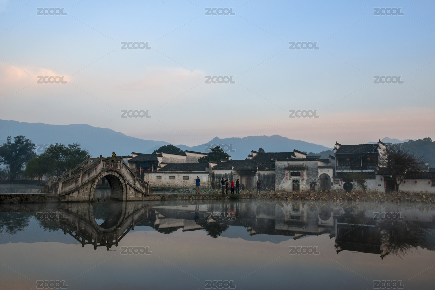 晨曦中的石桥古村落,中国安徽省黟县宏村