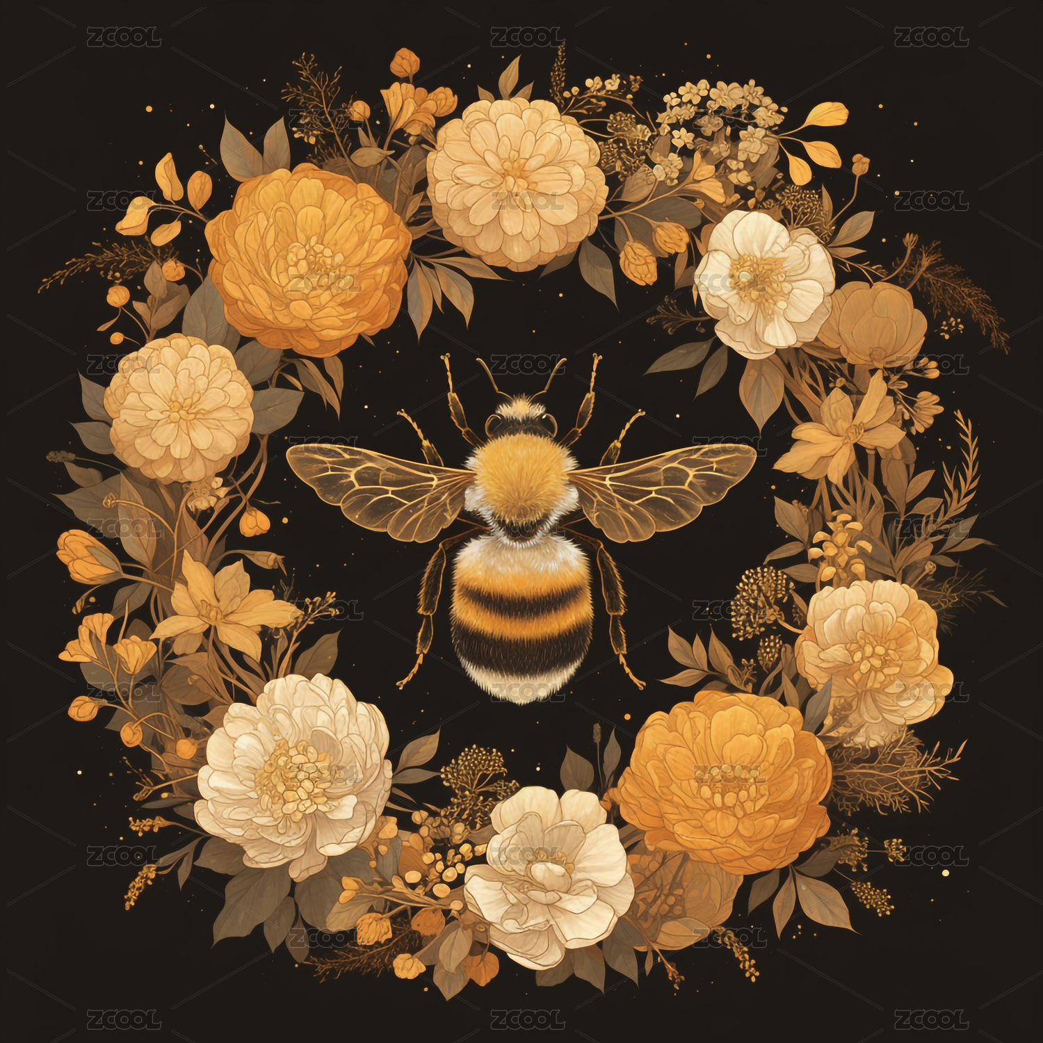 蜜蜂蜂巢花卉图案