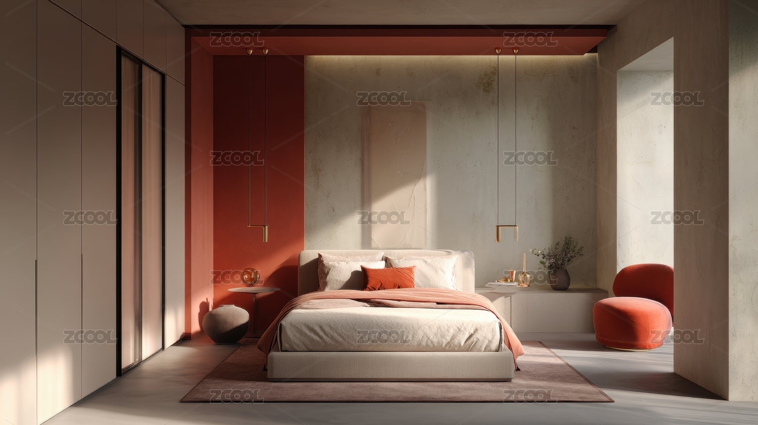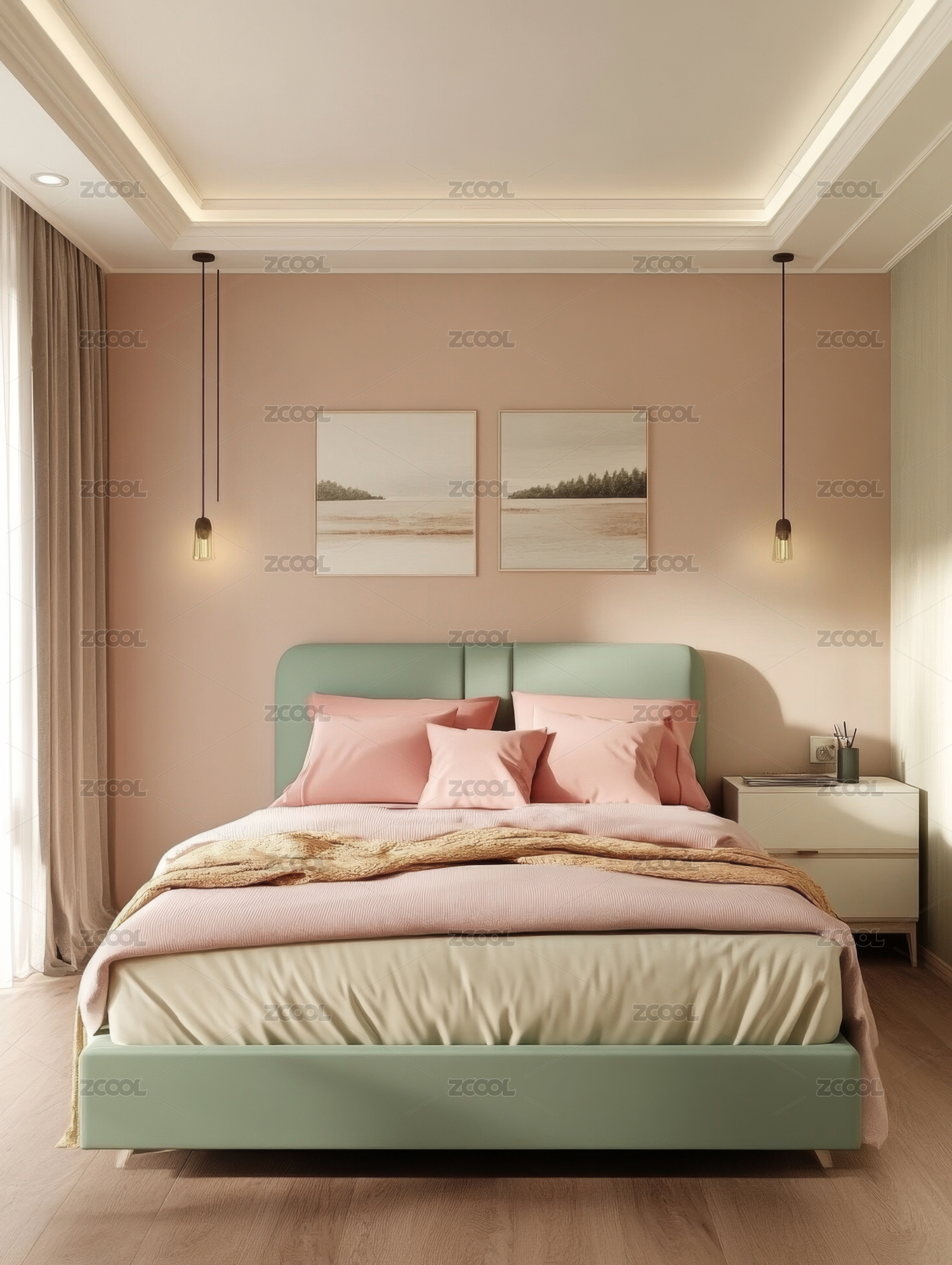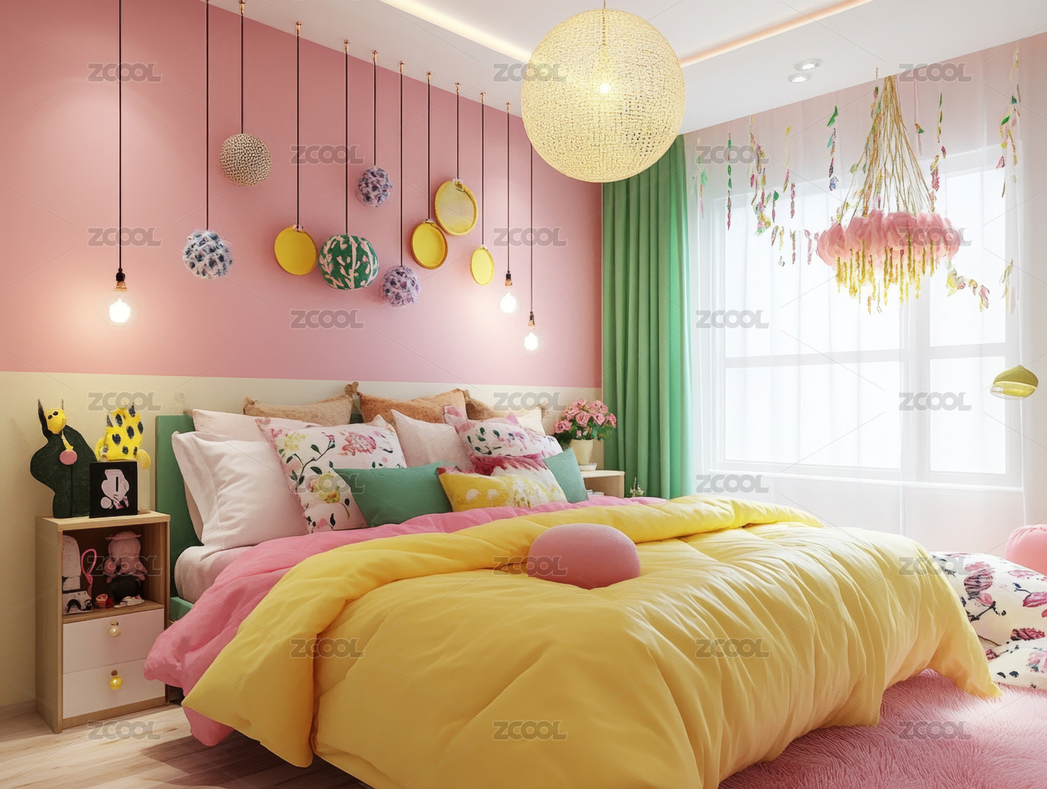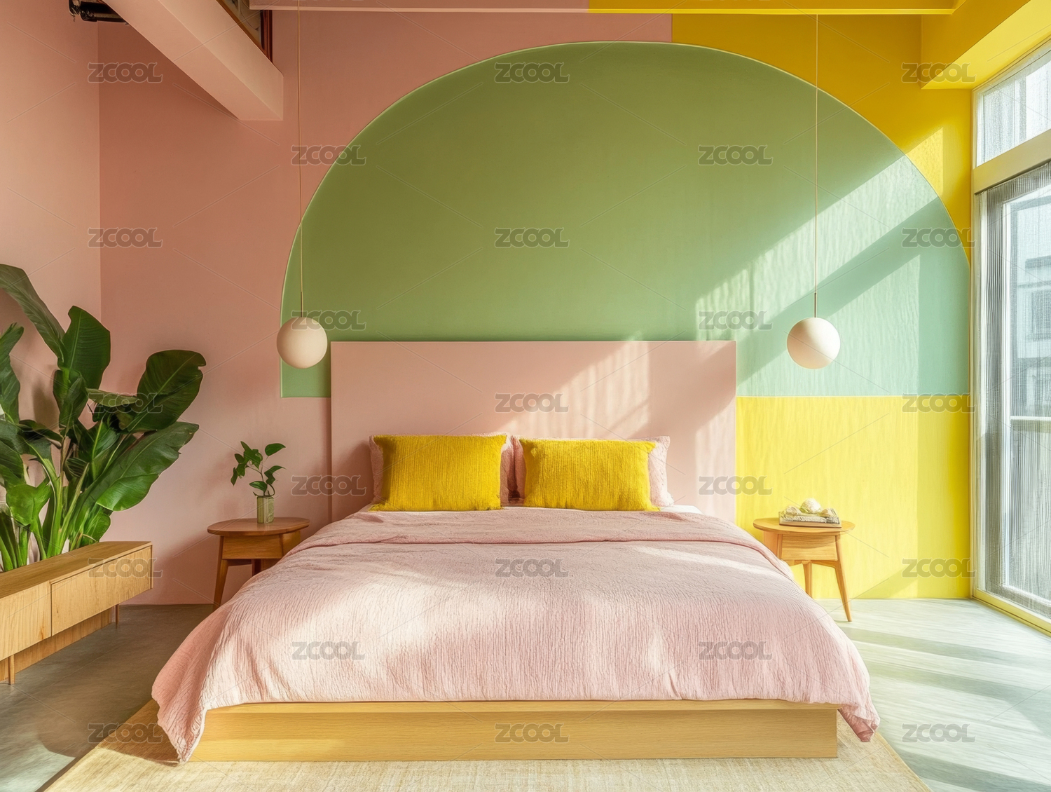 卧室,霓虹灯,现代,设计,粉色,黄色,室内,装饰,植物,床