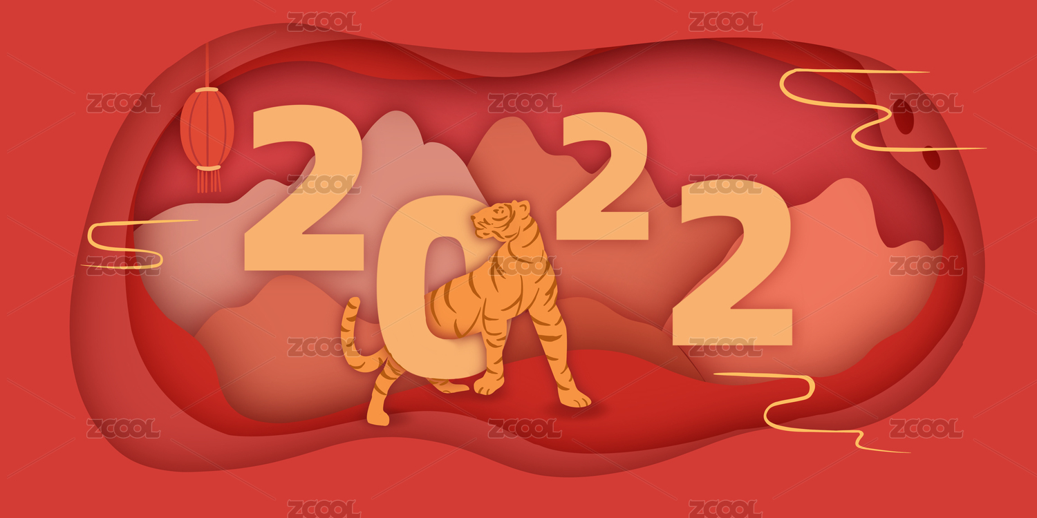 2022剪纸风格新年虎年元旦插画