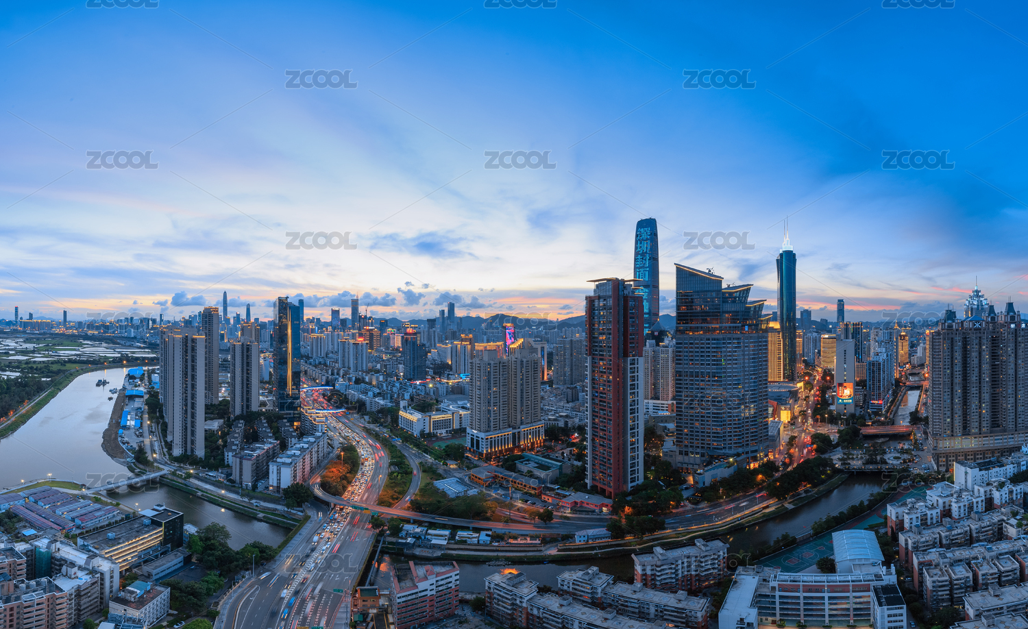 深圳,CBD商圈,城市中心,城市,摩天大楼,夜景,夜空,天空,火烧云,车轨