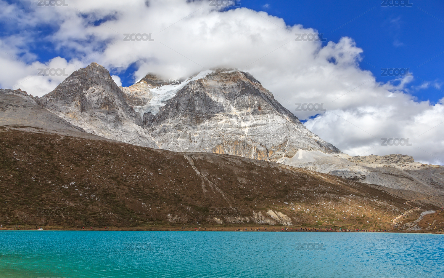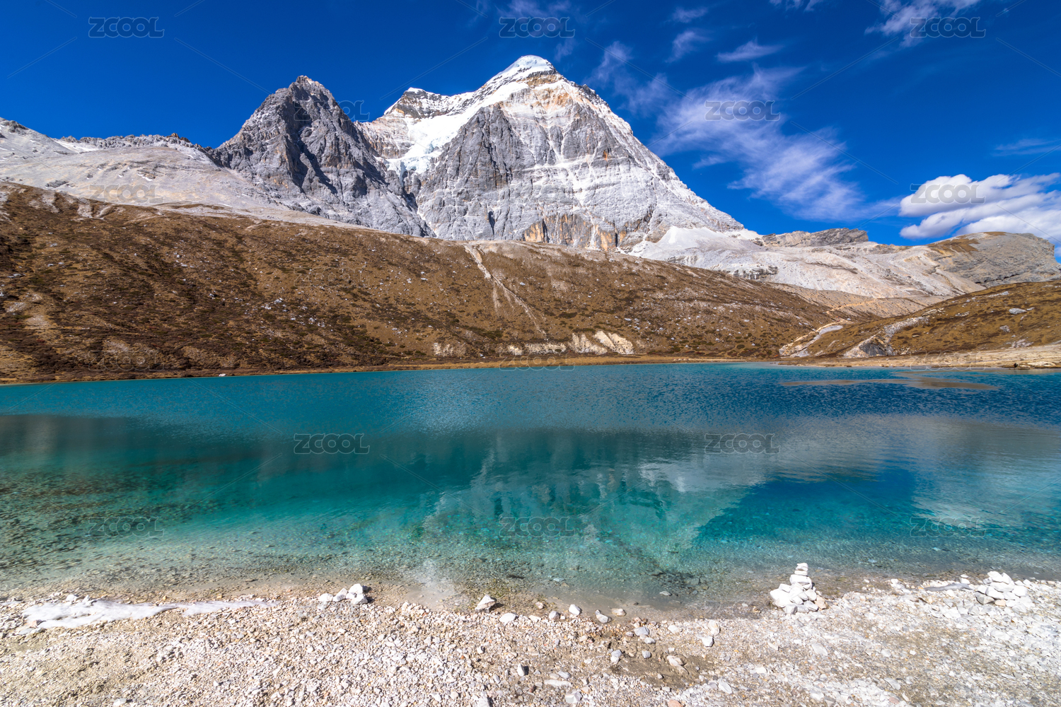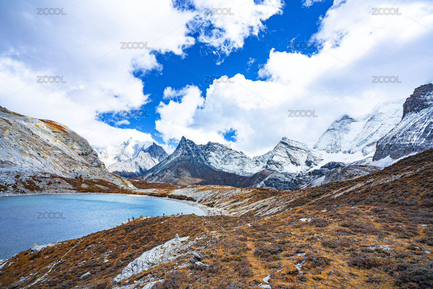 稻城亚丁,央迈勇,雪山,户外,高山湖泊,自然保护区,蓝天白云,秋季,四川,川西高原
