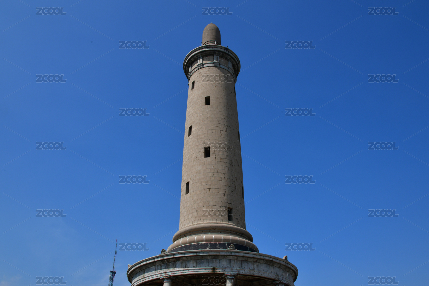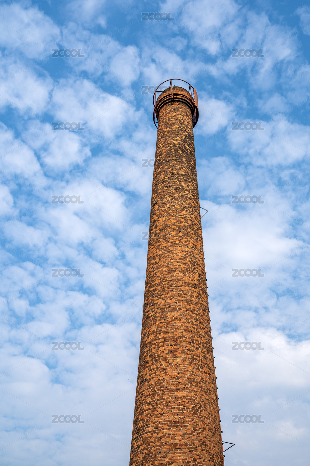 蓝天白云背景中红色砖墙大烟囱仰拍