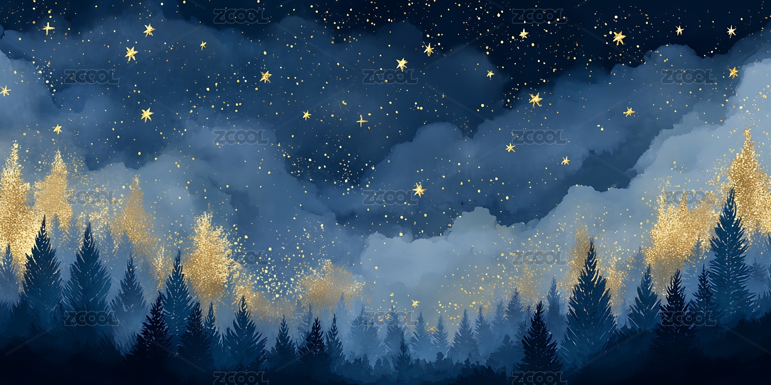 手绘唯美的抽象艺术感夜晚天空风景插画