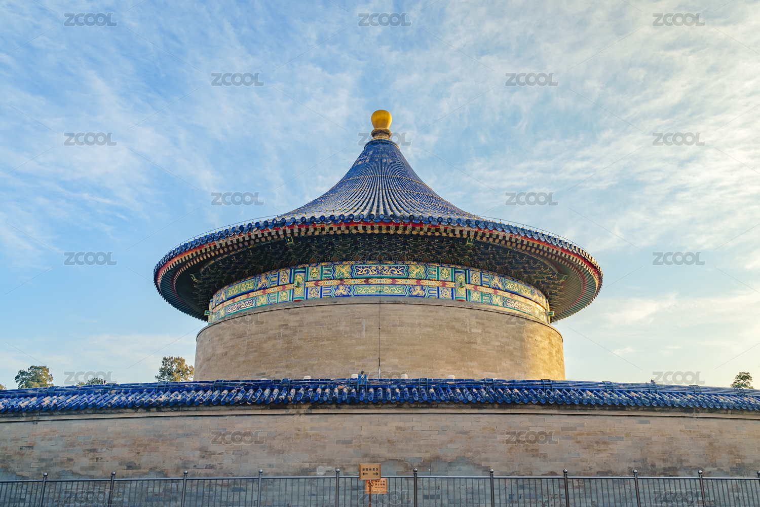 清晨阳光下的天坛祈年殿与围墙