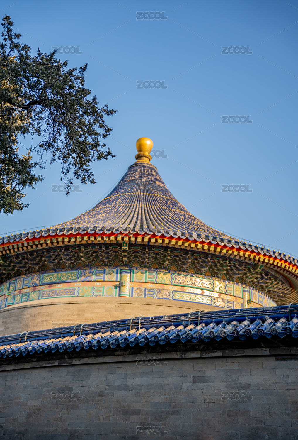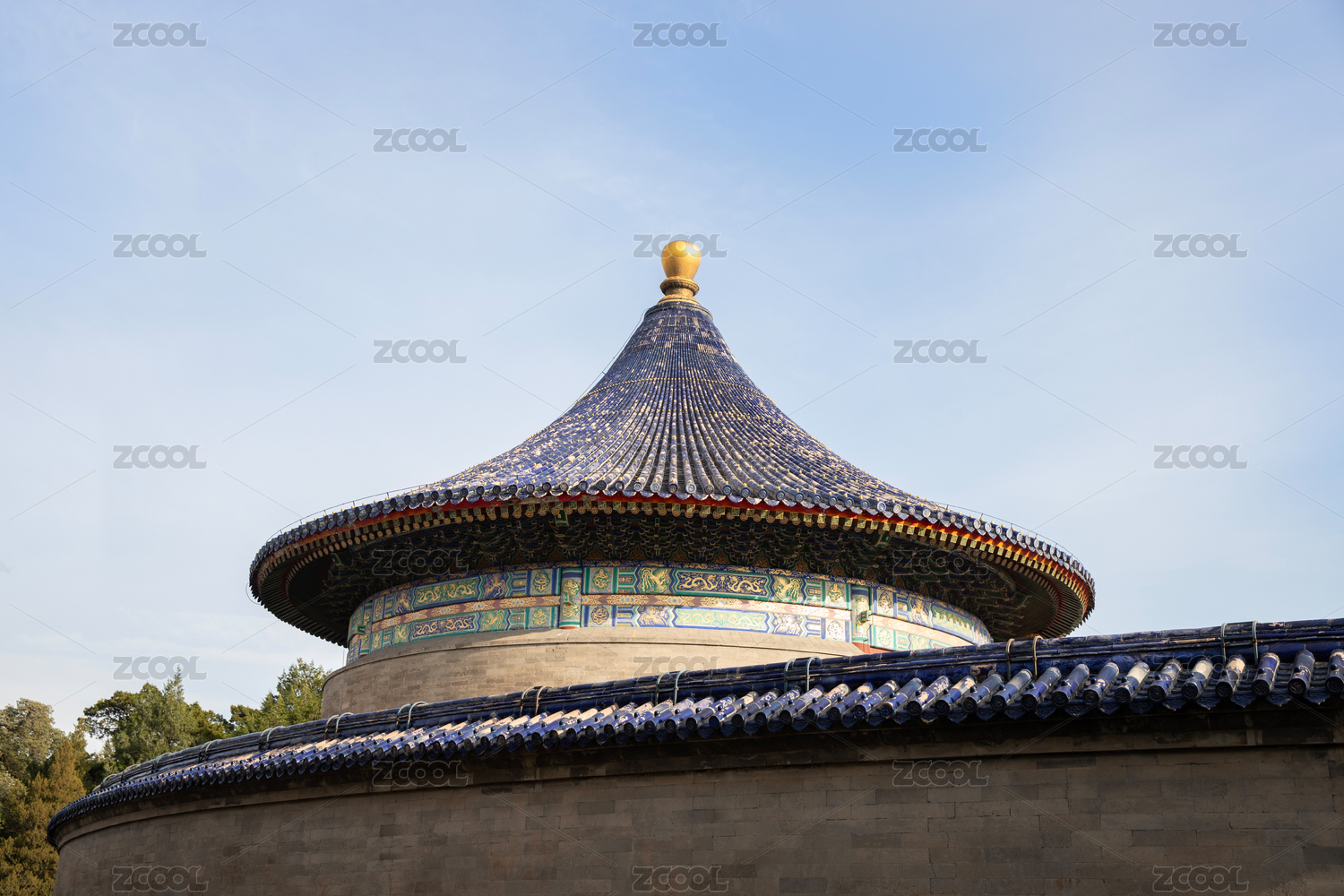 清晨阳光下的天坛皇穹宇蓝色屋顶特写