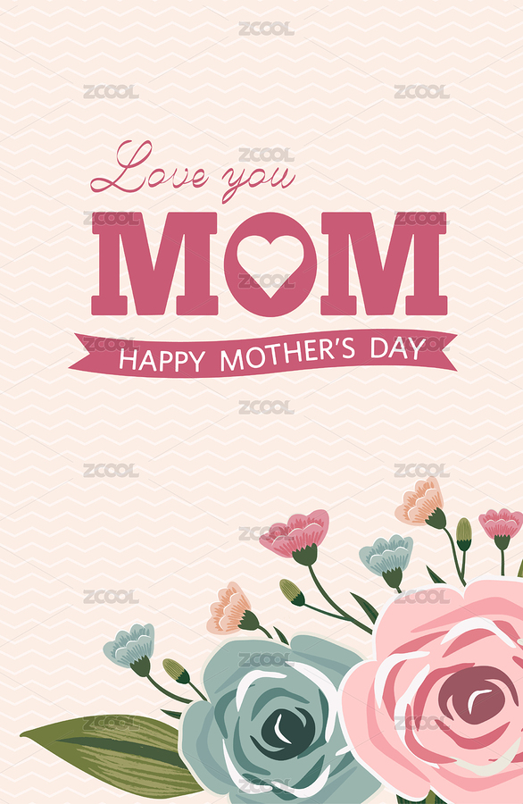 母亲节主题装饰含花朵爱心和Mom