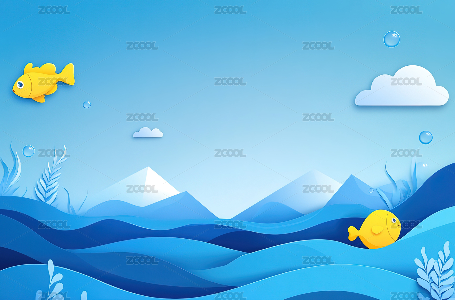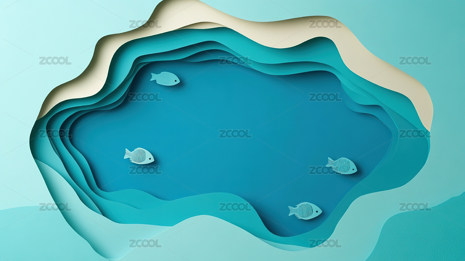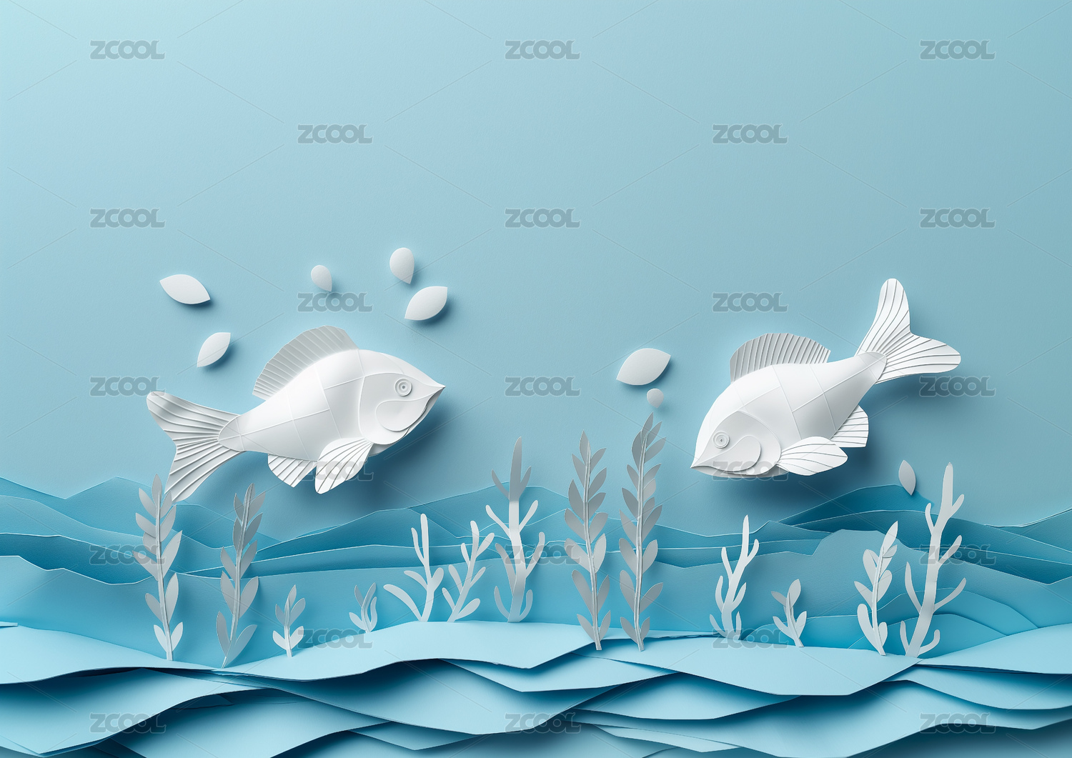 多层剪纸风格水底游动的小鱼
