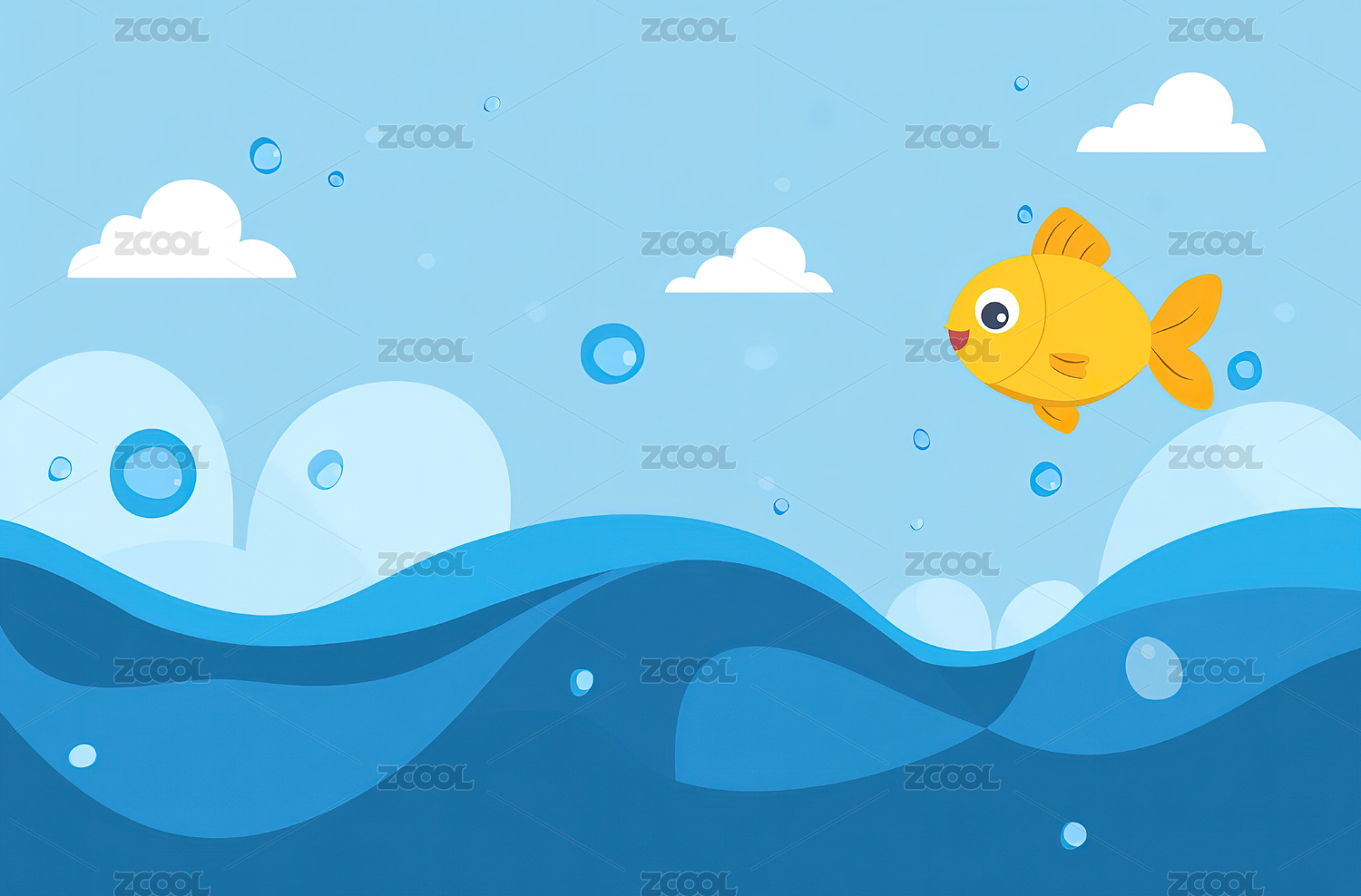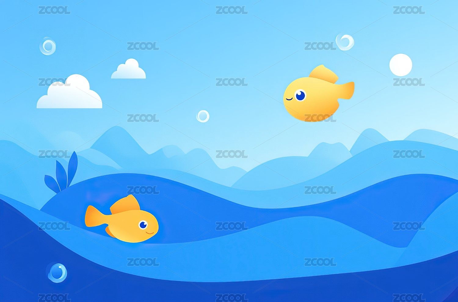 简洁风格卡通鱼插画