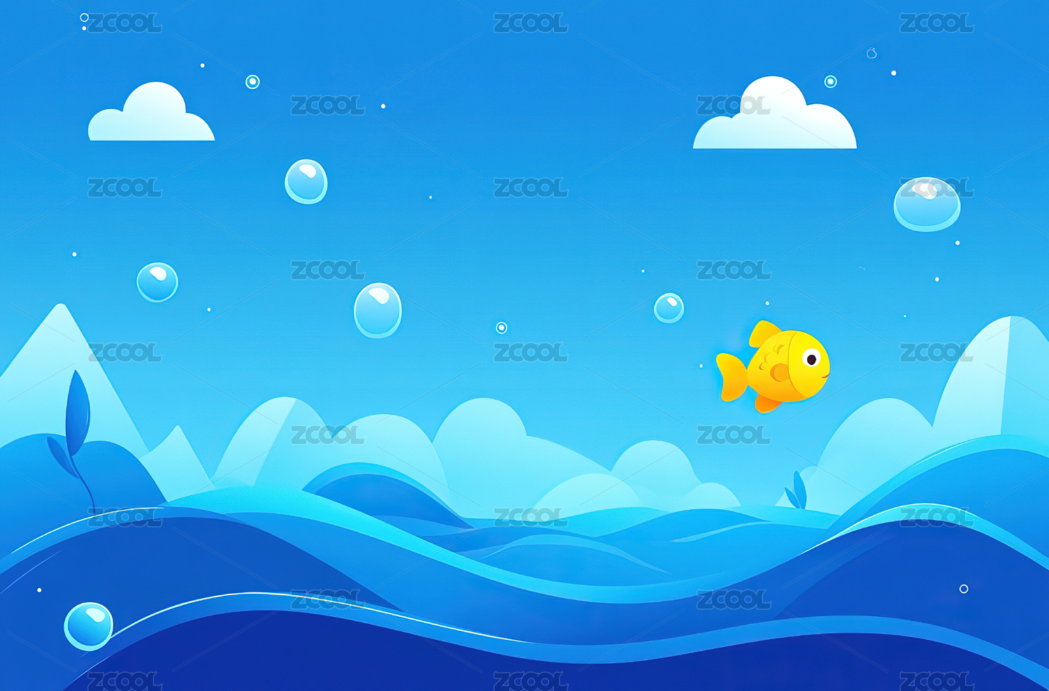 金鱼蓝色水中背景