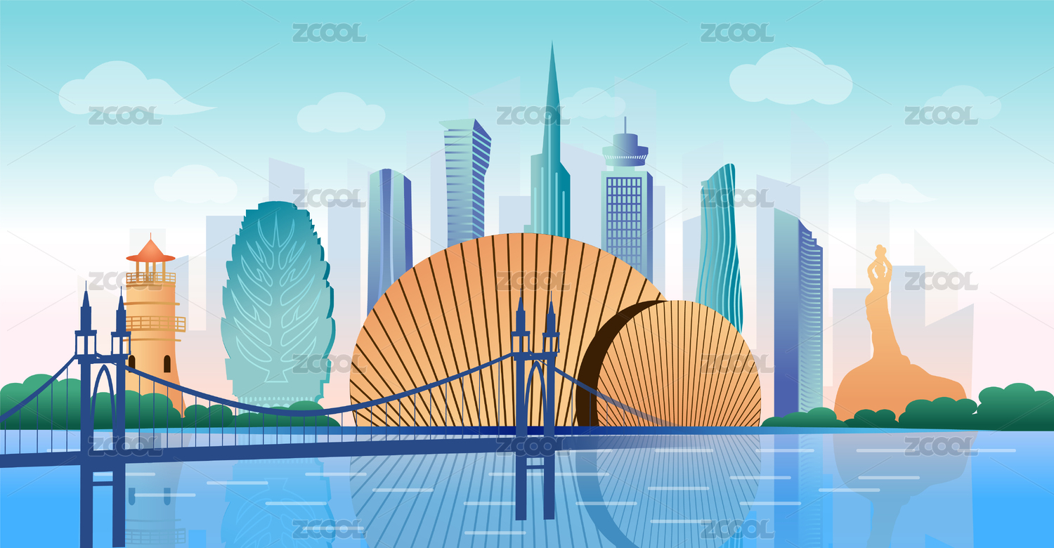 中国,辽宁省,大连市,城市,风景,地标,建筑,矢量,插画,扁平