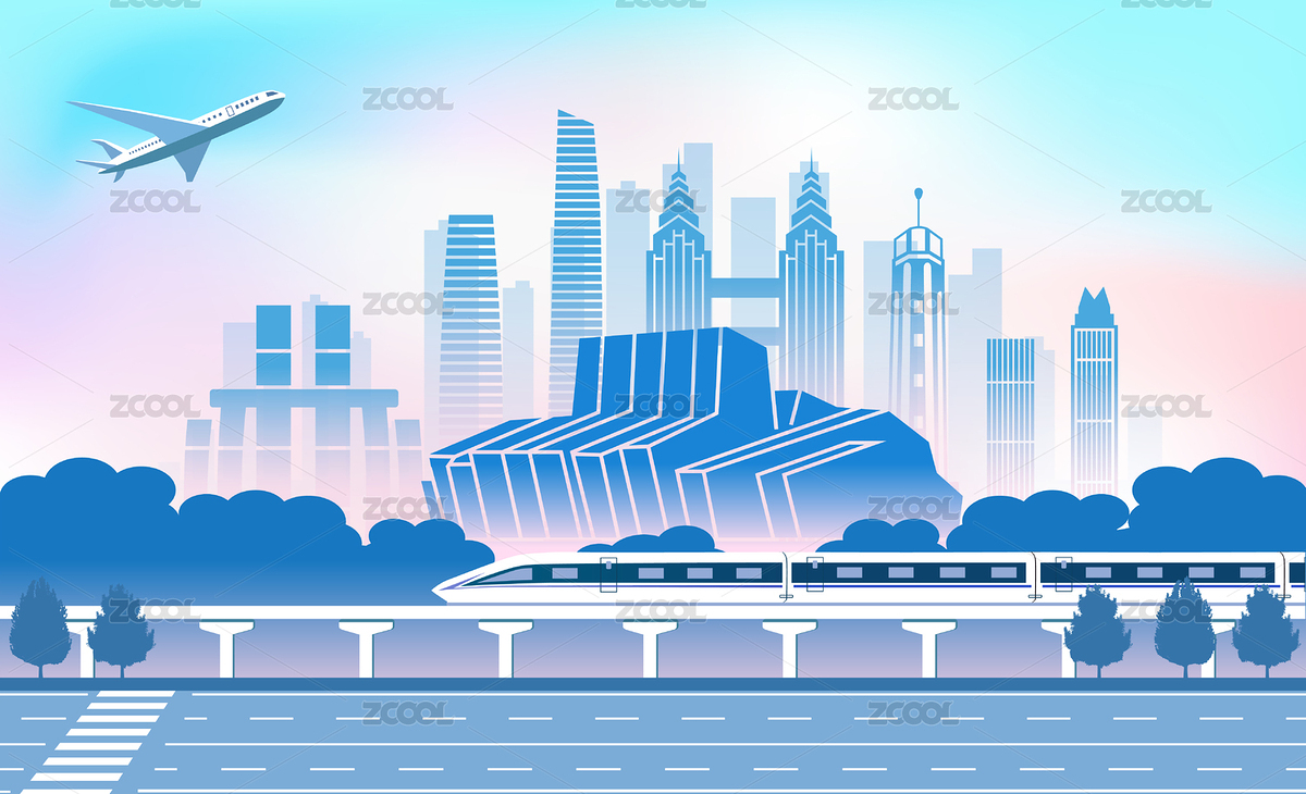 中国河北石家庄市城市旅游交通商务插画蓝色