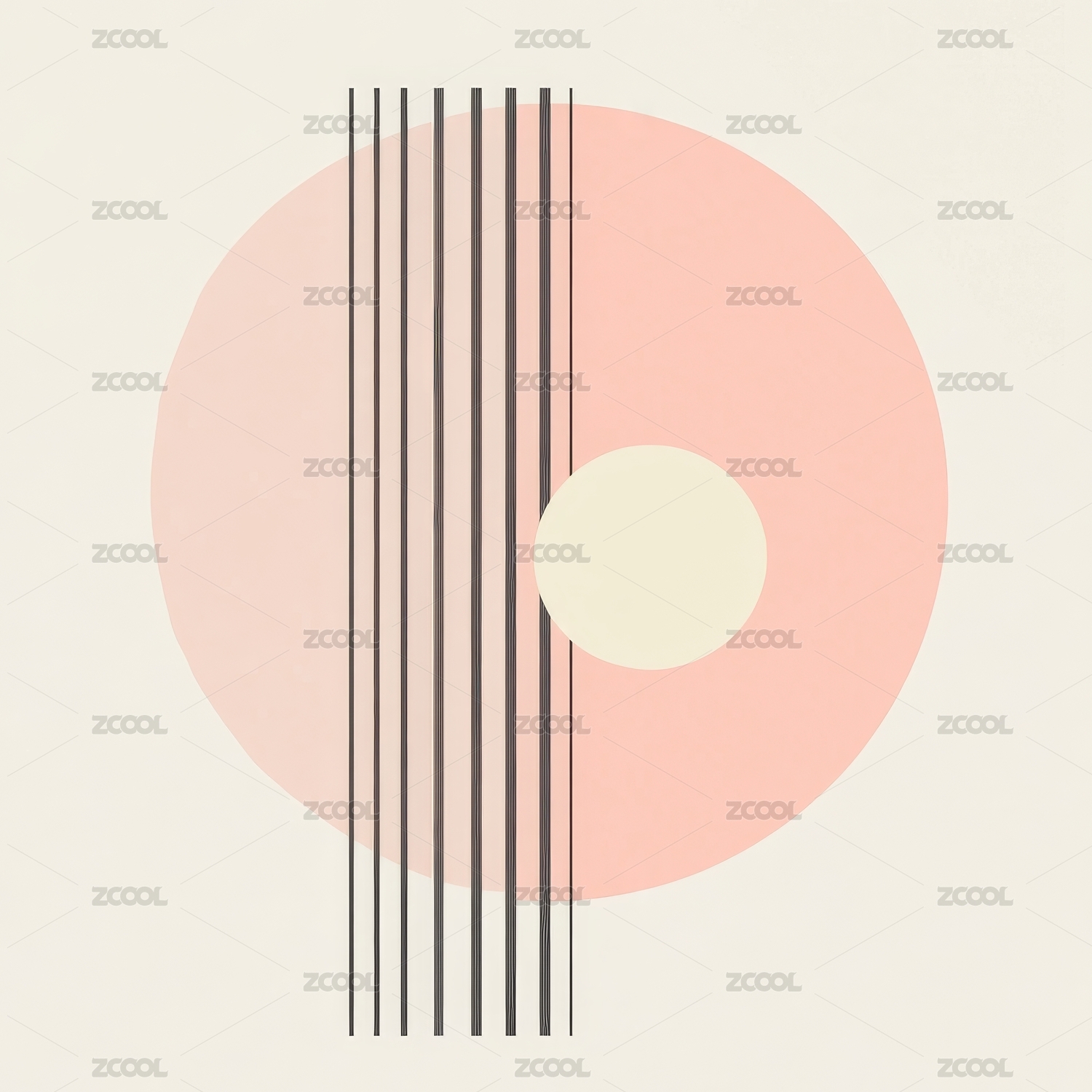 粉色圆圈与竖条的抽象组合
