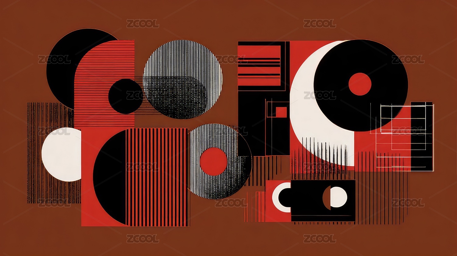 几何图形组合成的抽象复古风格艺术作品