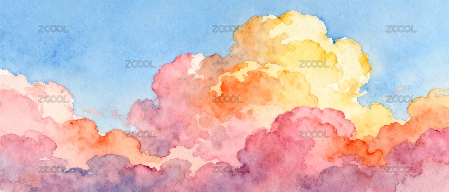 水彩天空云朵梦幻背景图