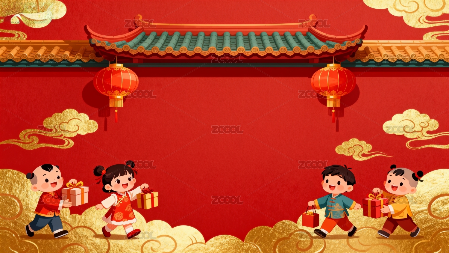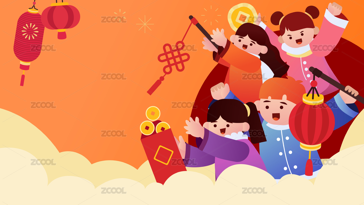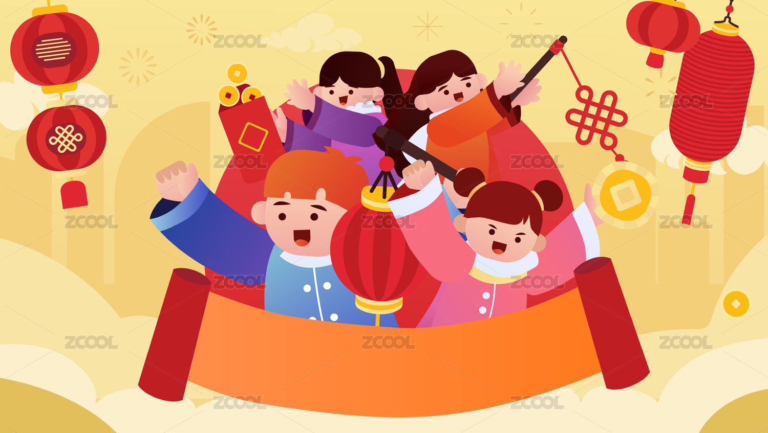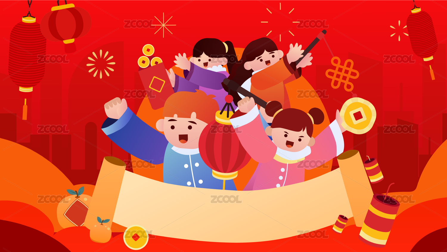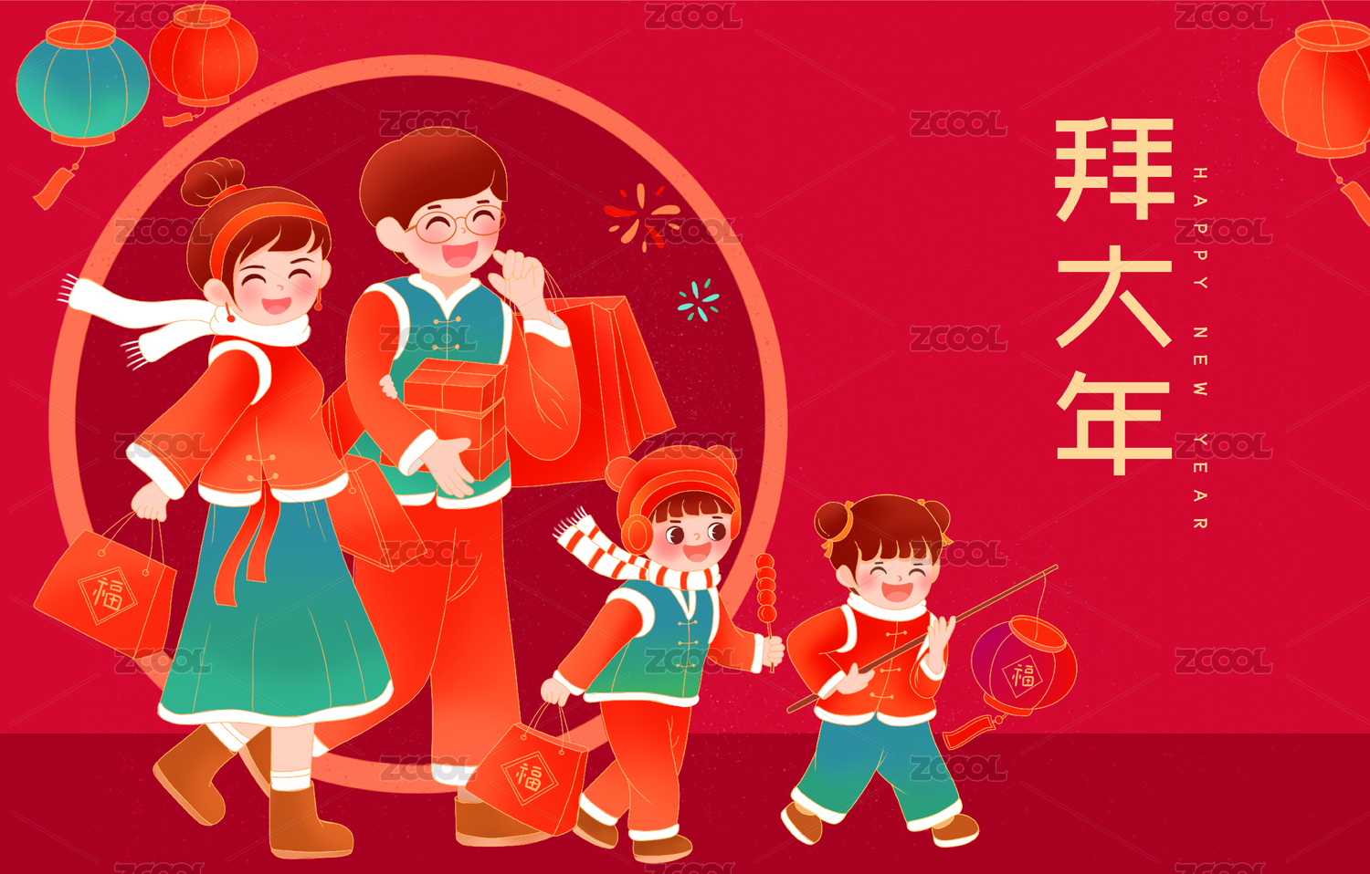 新春龙年过年人物传统喜庆矢量插画素材背景