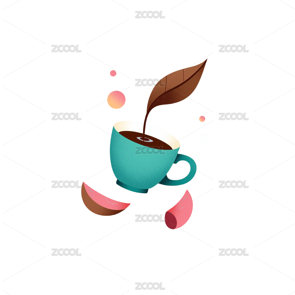 两只鸟儿在咖啡杯上嬉戏的矢量图形