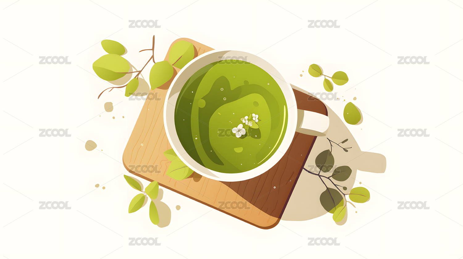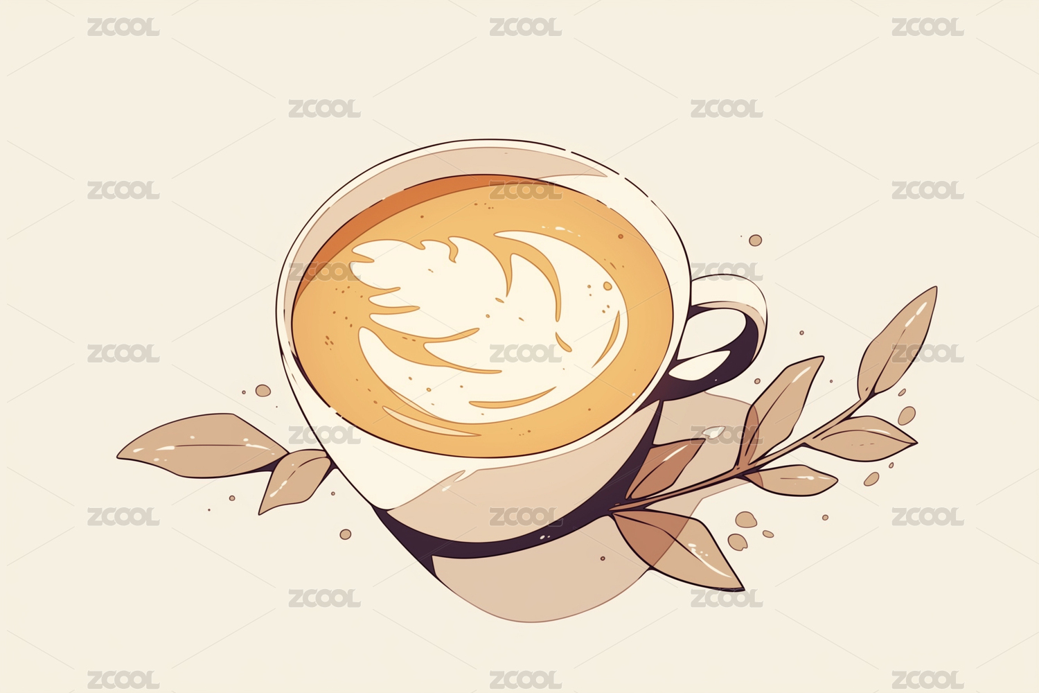 清新明亮一杯拉花浓稠牛奶咖啡饮料