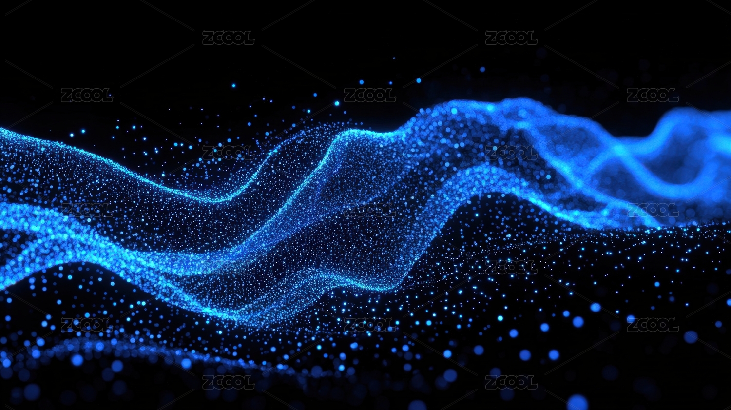 蓝色光波粒子流动效果