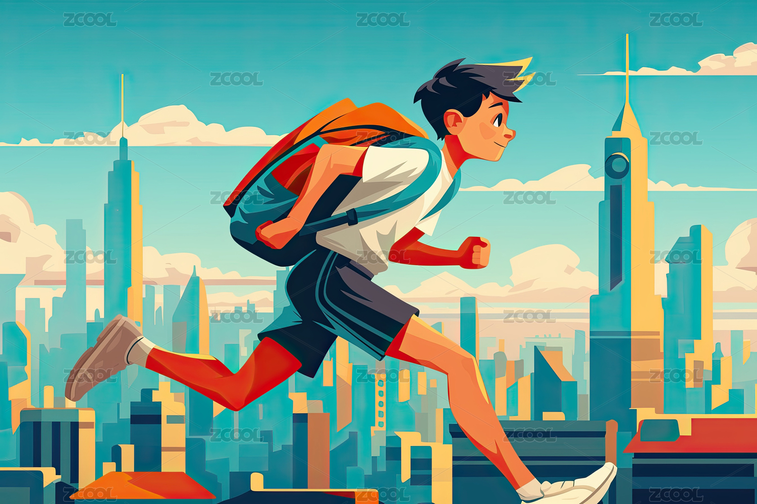 人物跑步运动插画,运动员训练马拉松冲刺海