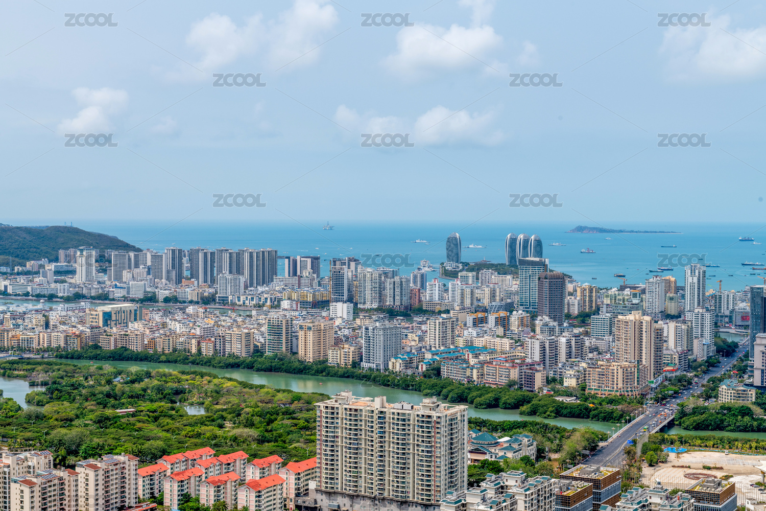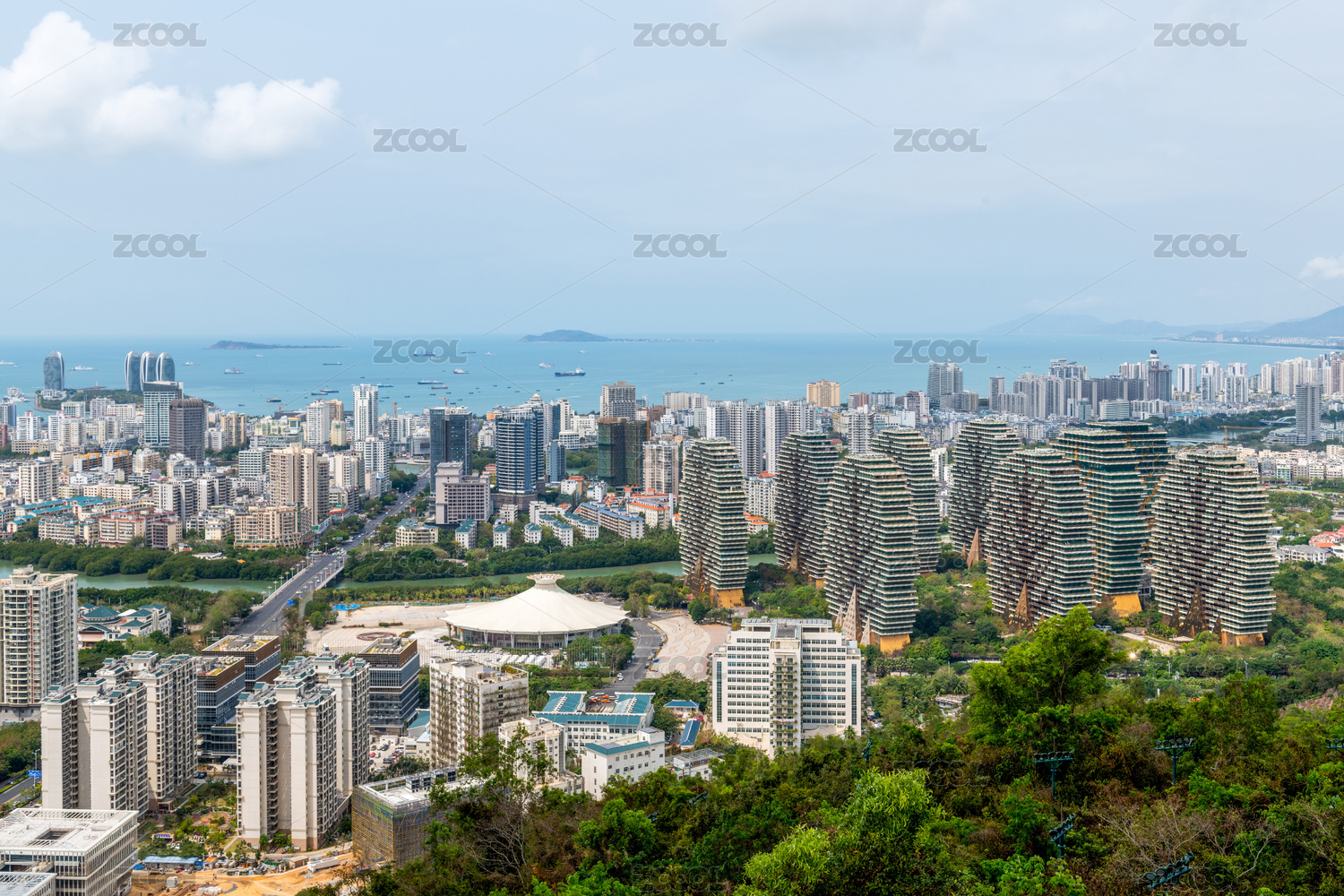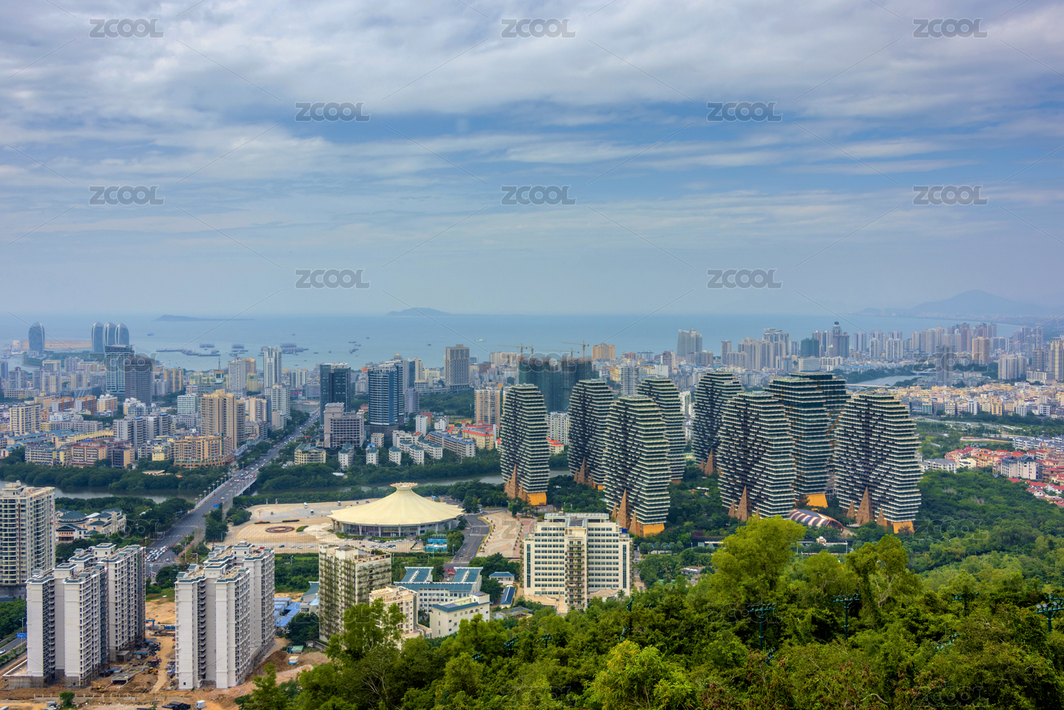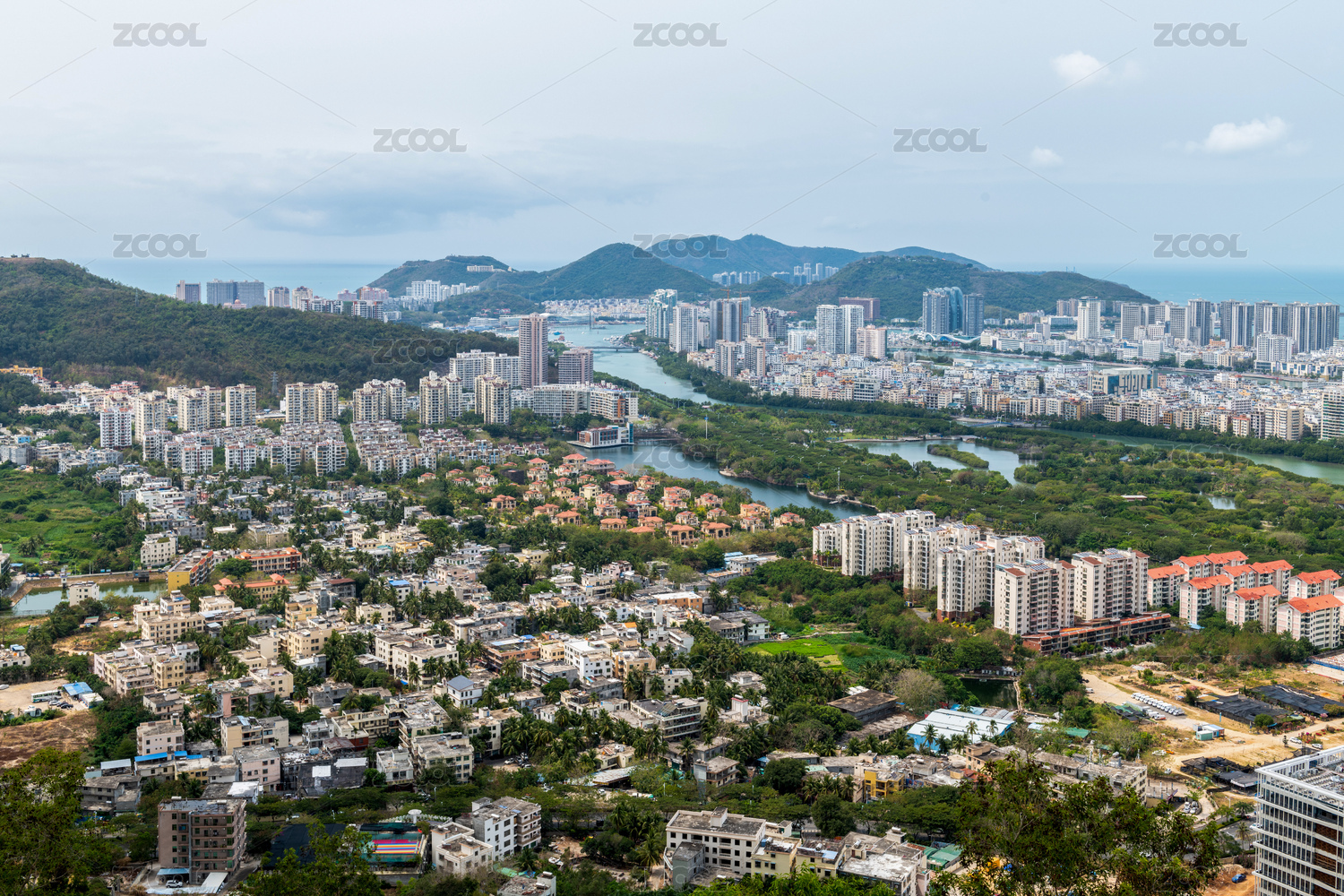 海南三亚临春岭深林公园山顶俯瞰城市建筑