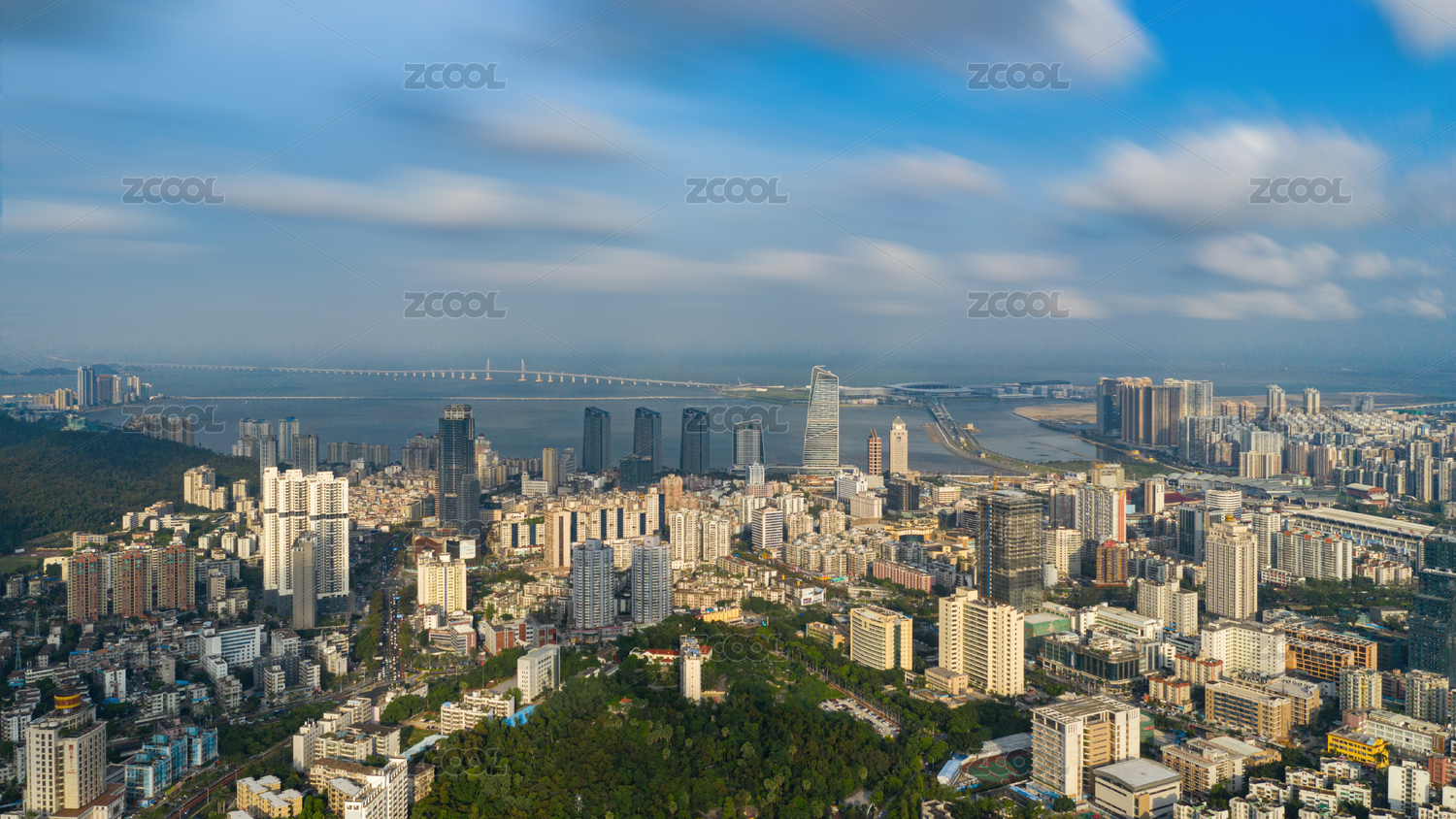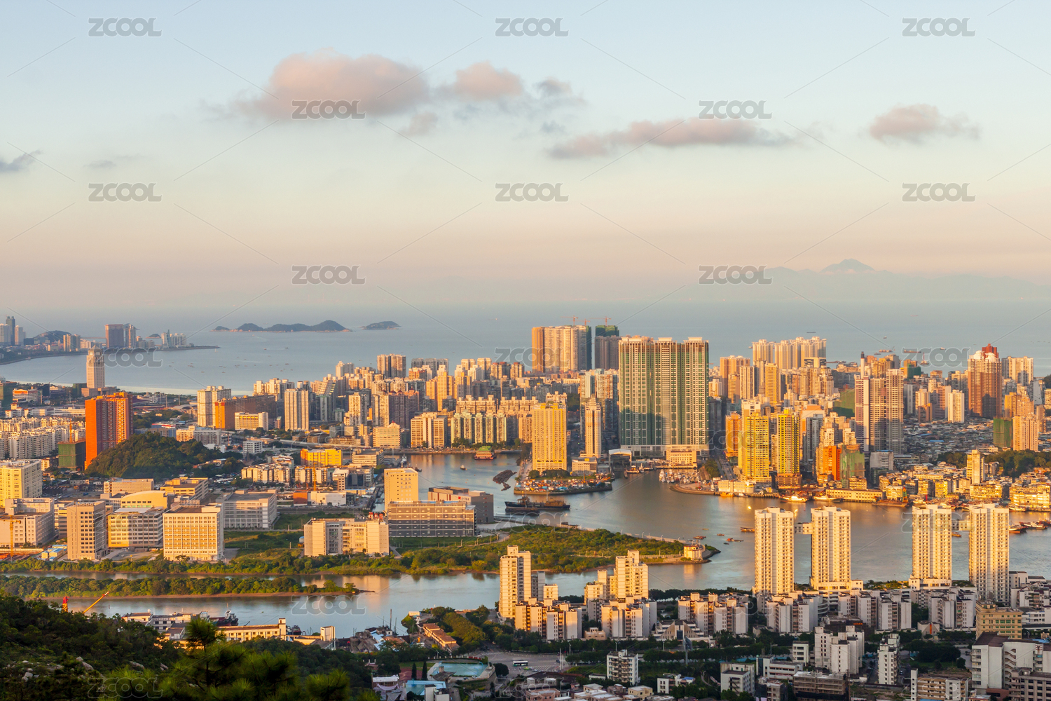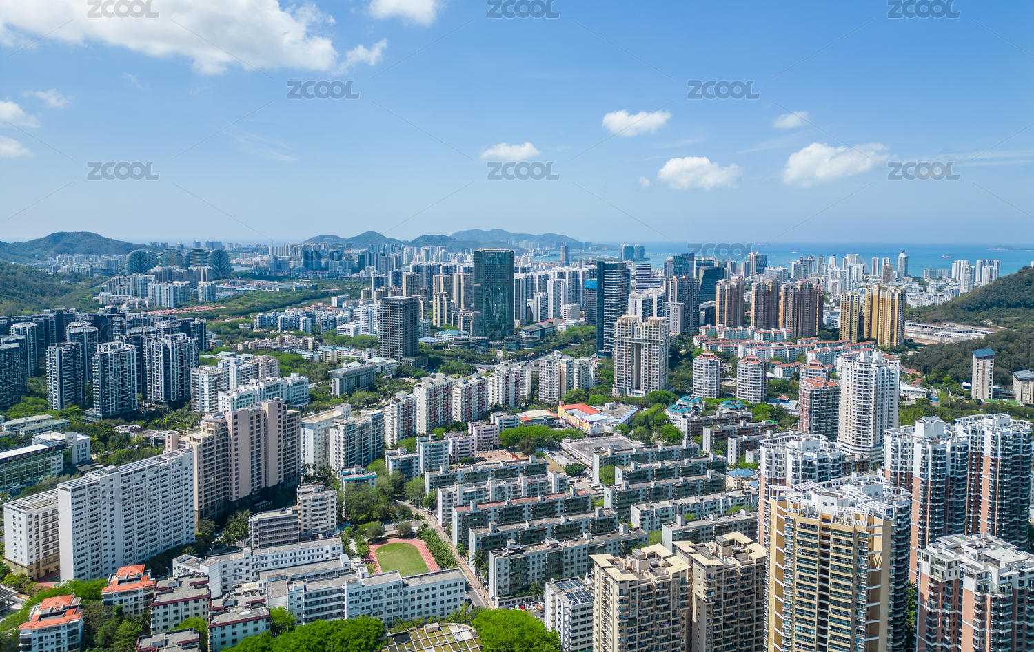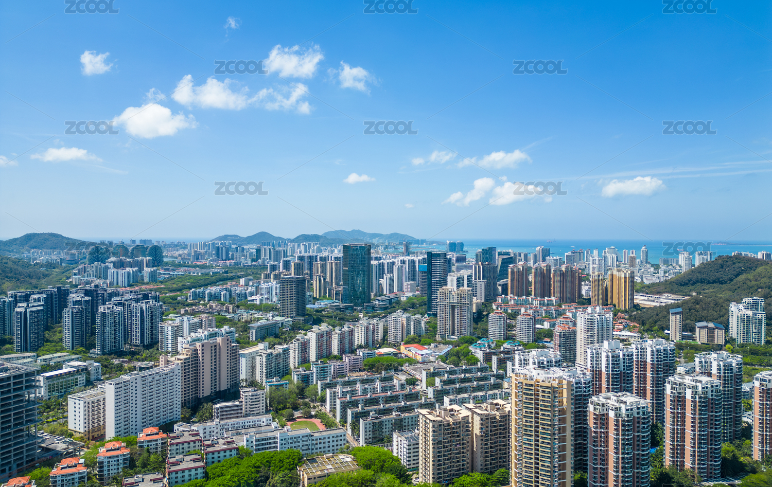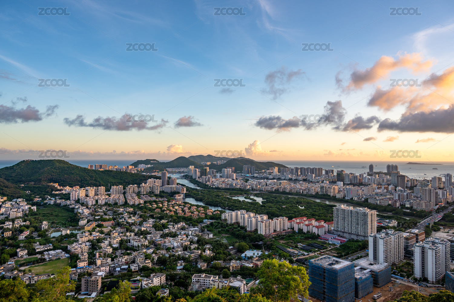海南三亚临春岭深林公园山顶俯瞰城市建筑