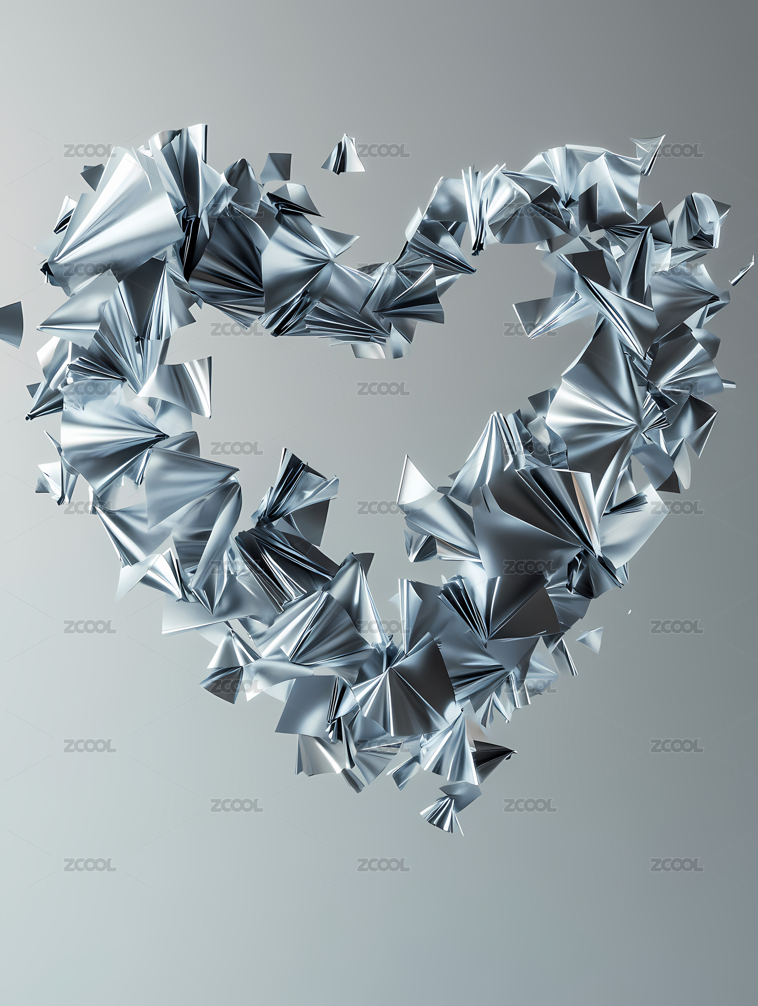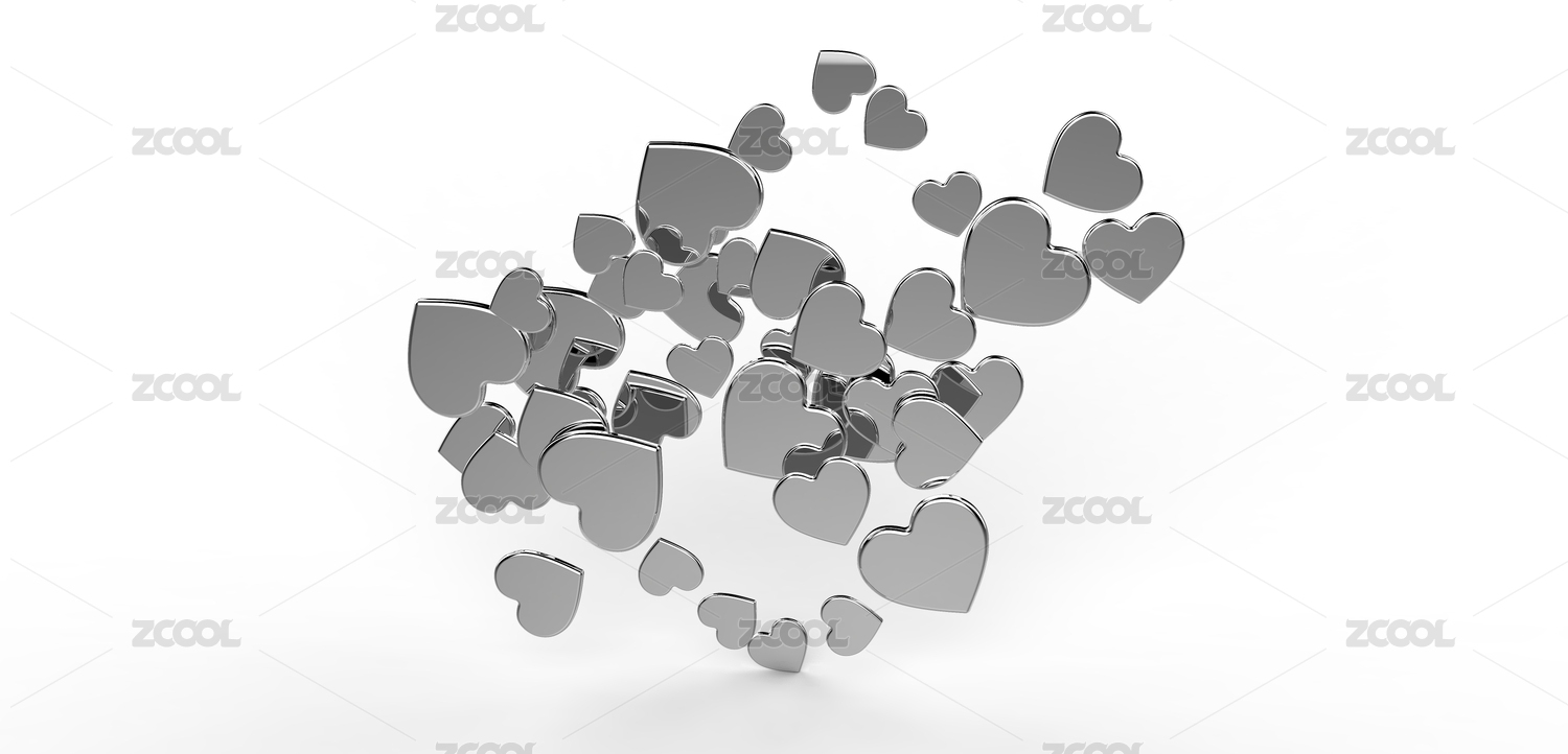 金属材质的彩色爱心桃悬浮在简洁背景上
