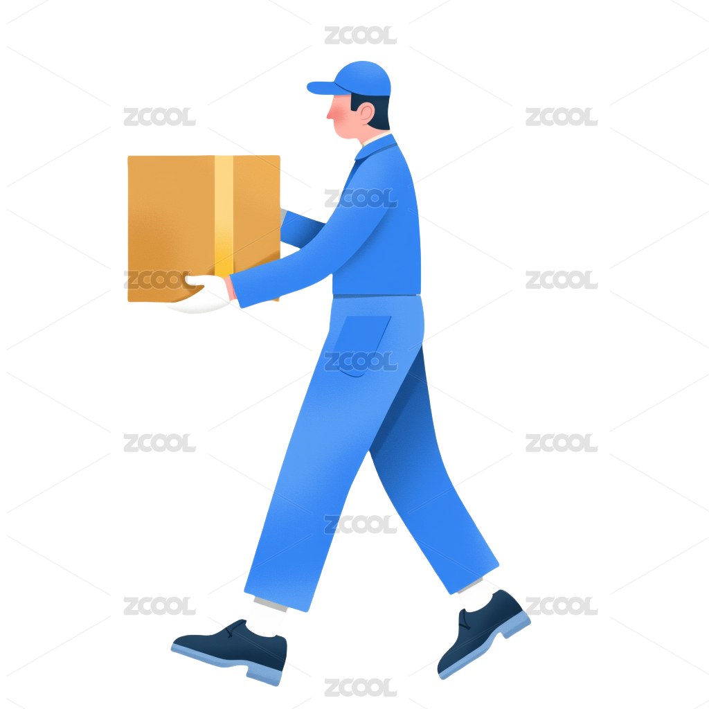穿蓝色上衣快递员搬运快递箱行走3D元素
