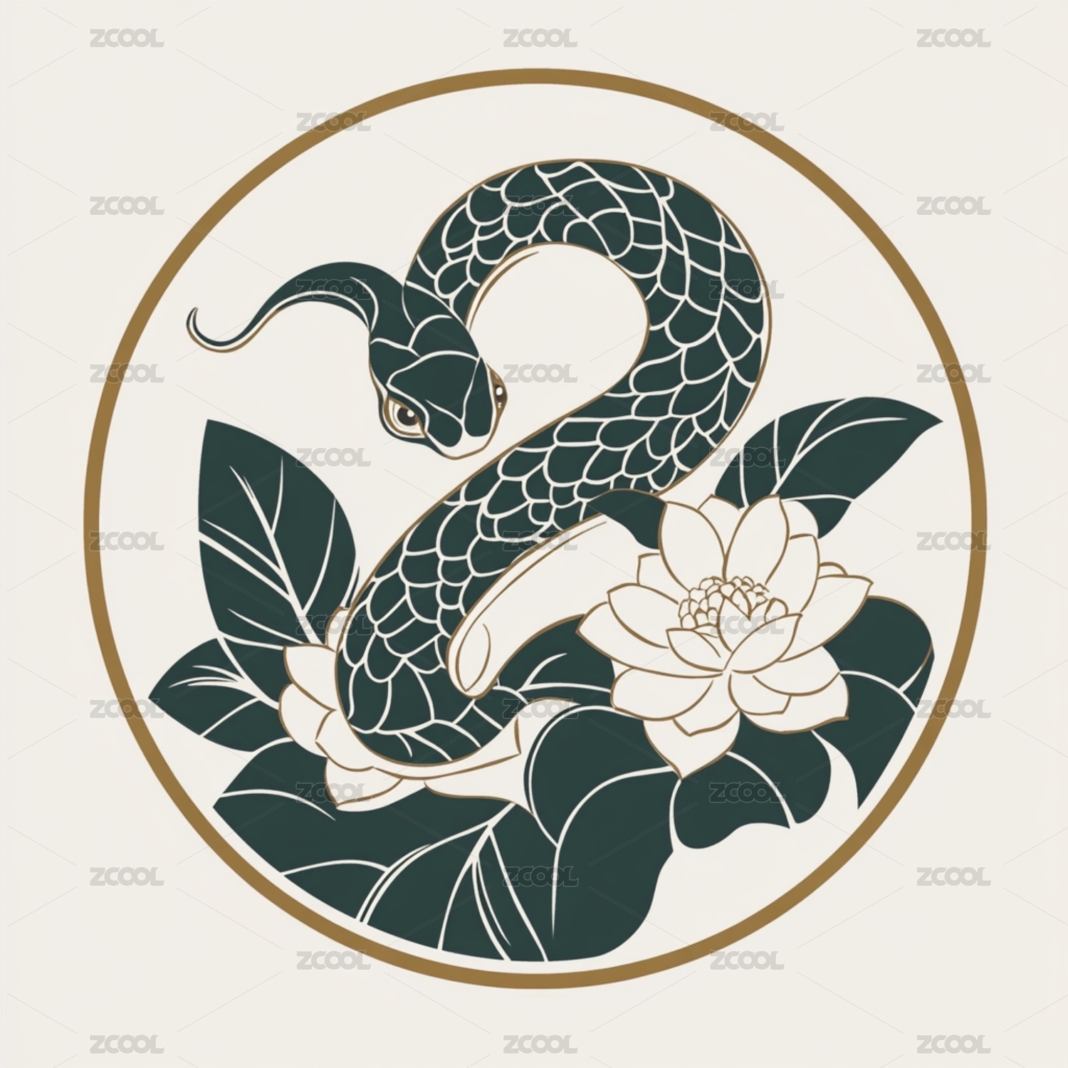 蛇年主题插画艺术剪纸图案logo徽章标志