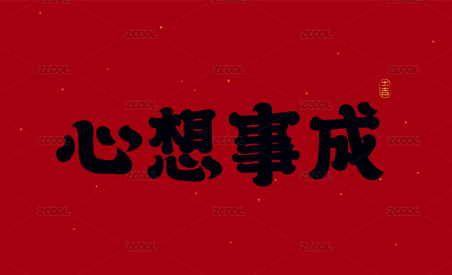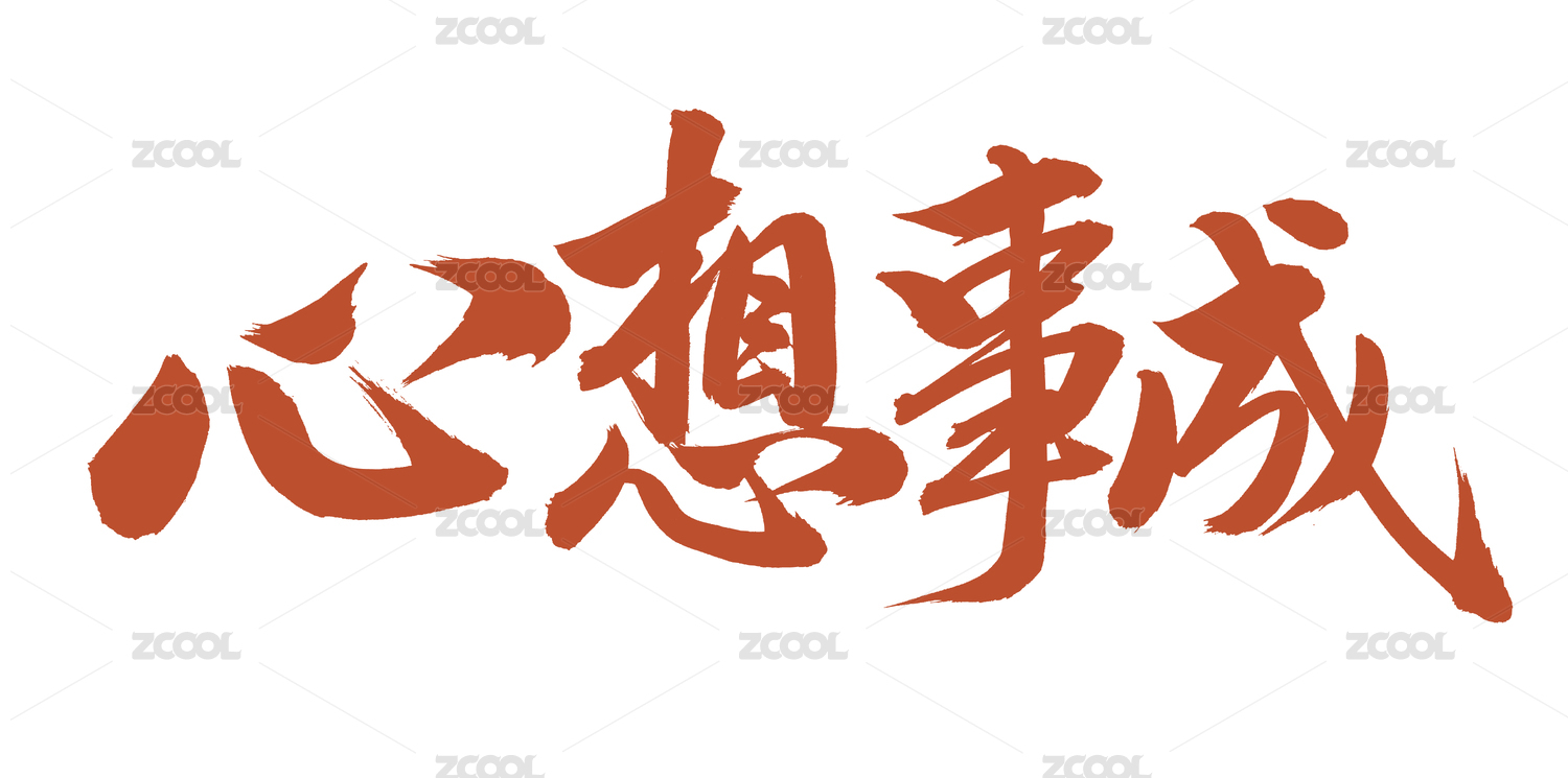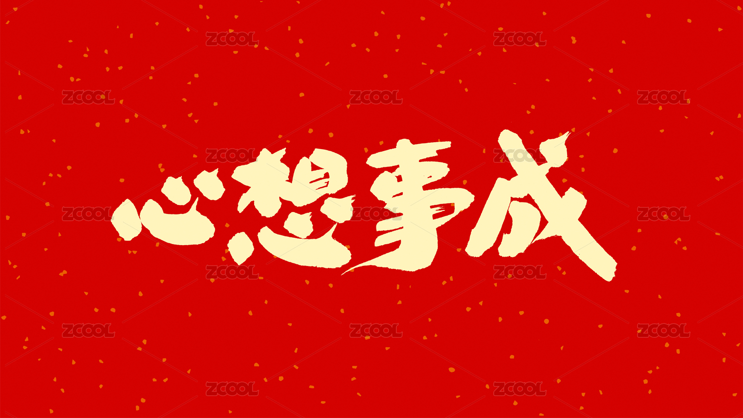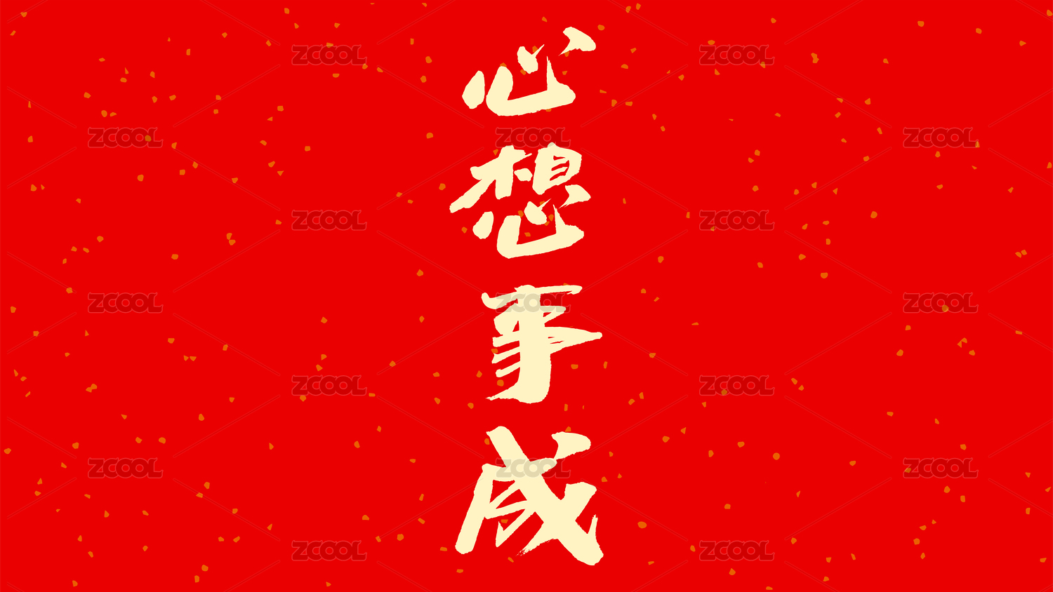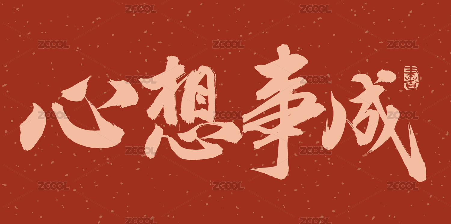 心想,事成,书法,毛笔字,黑色,红色,背景,行书